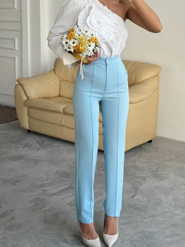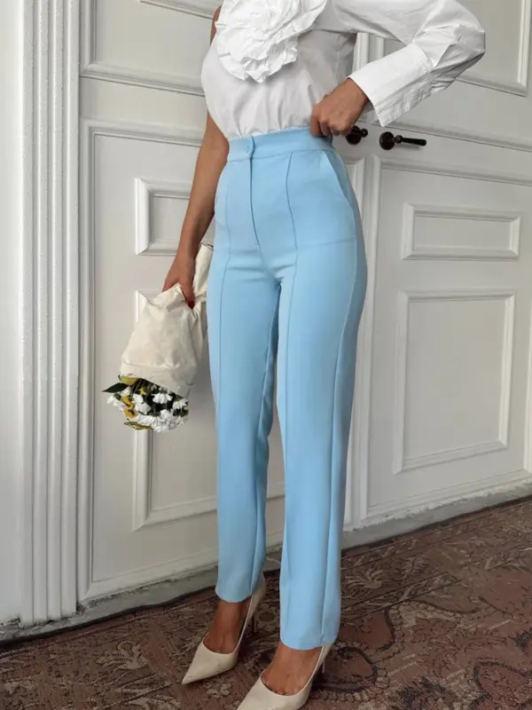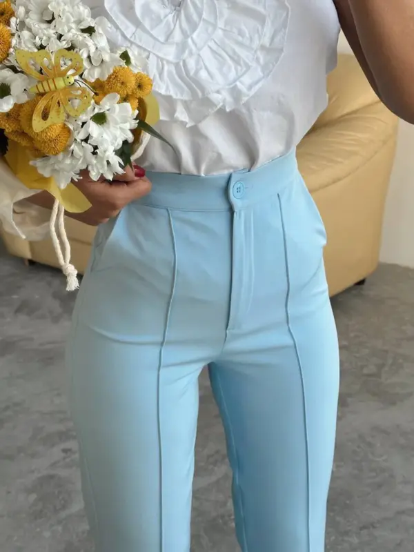 🔹 Kroj: Hlače visokog struka, ravne nogavice