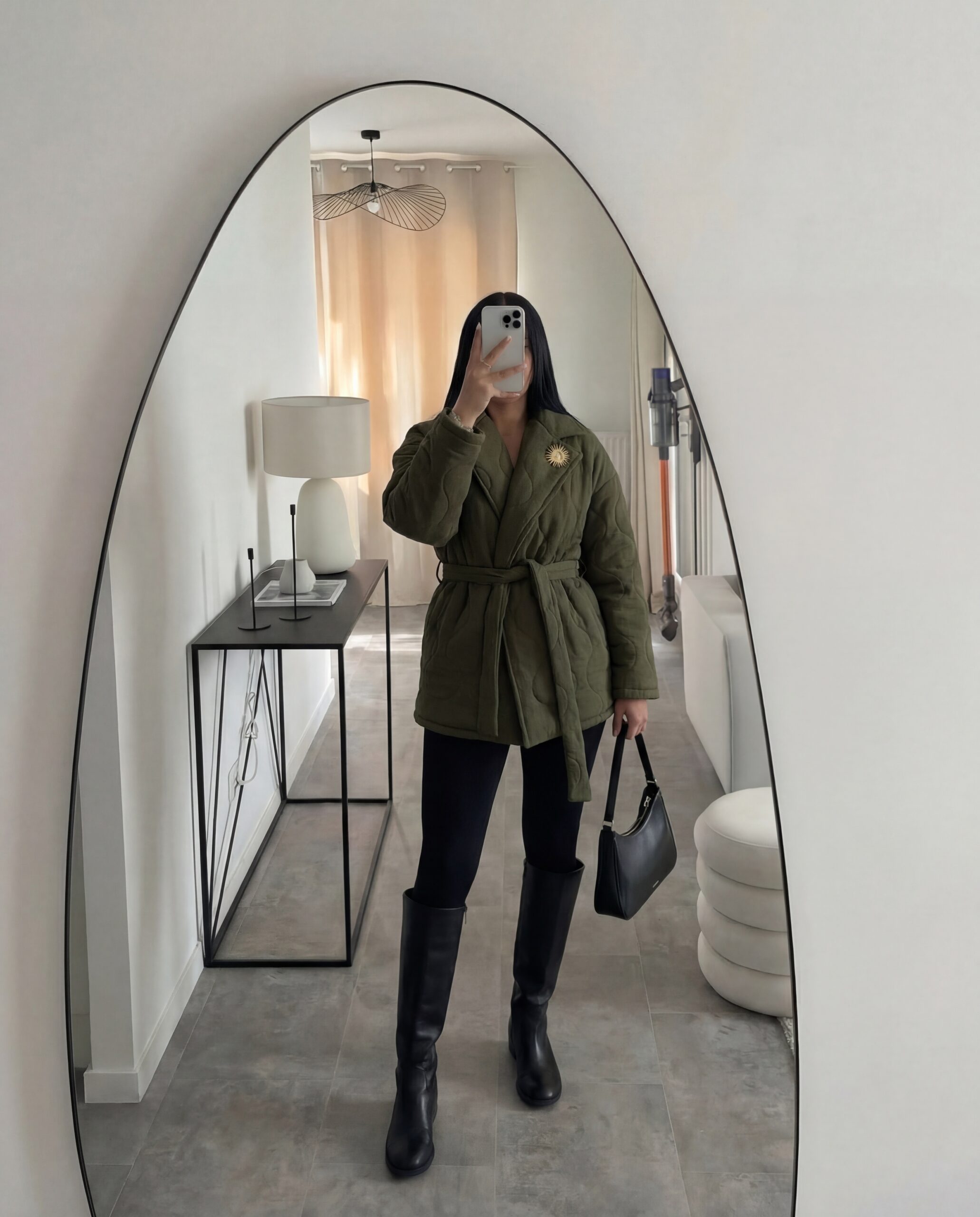 Odlično se kombinuje uz kožne čizme, jednostavne džempere ili rolke i torbu u toplim tonovima. Savršena jakna za šetnje, posao ili casual izlazak — stilizovana, a opet maksimalno praktična.