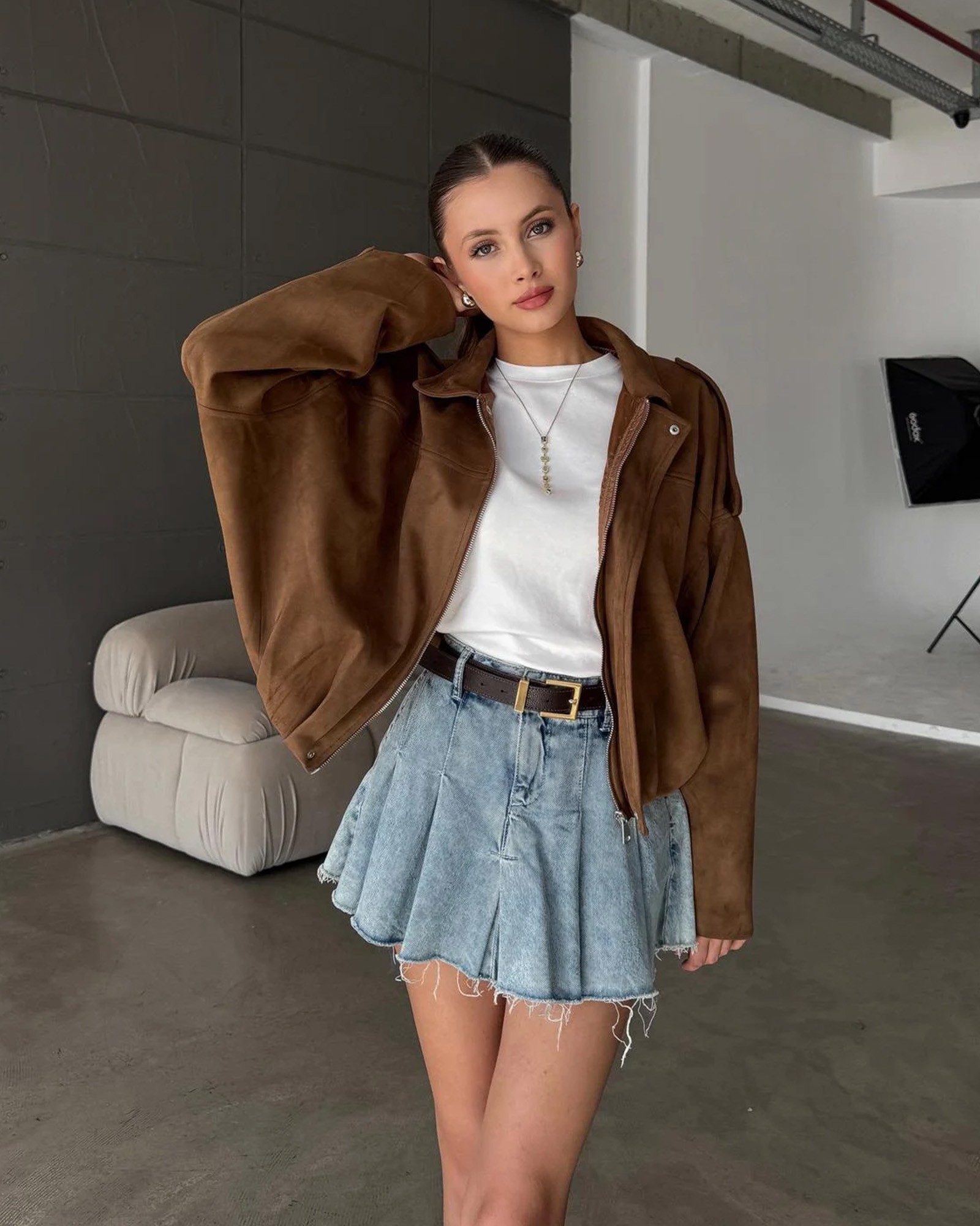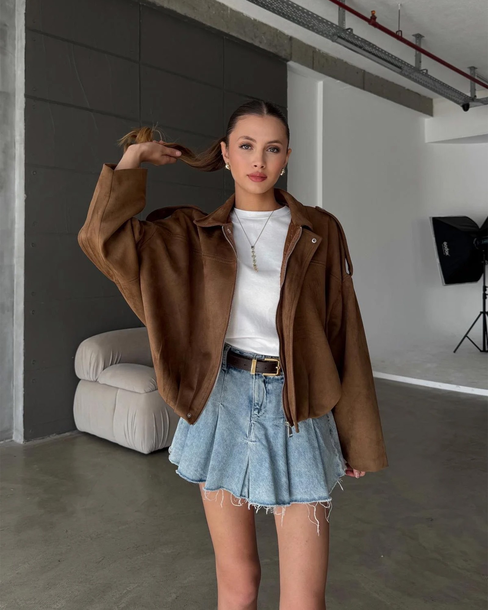 Kombiniraj uz bijelu majicu i mini traper suknju za moderan, svakodnevni look ili uz čizme i kožne hlače za urbanu eleganciju.