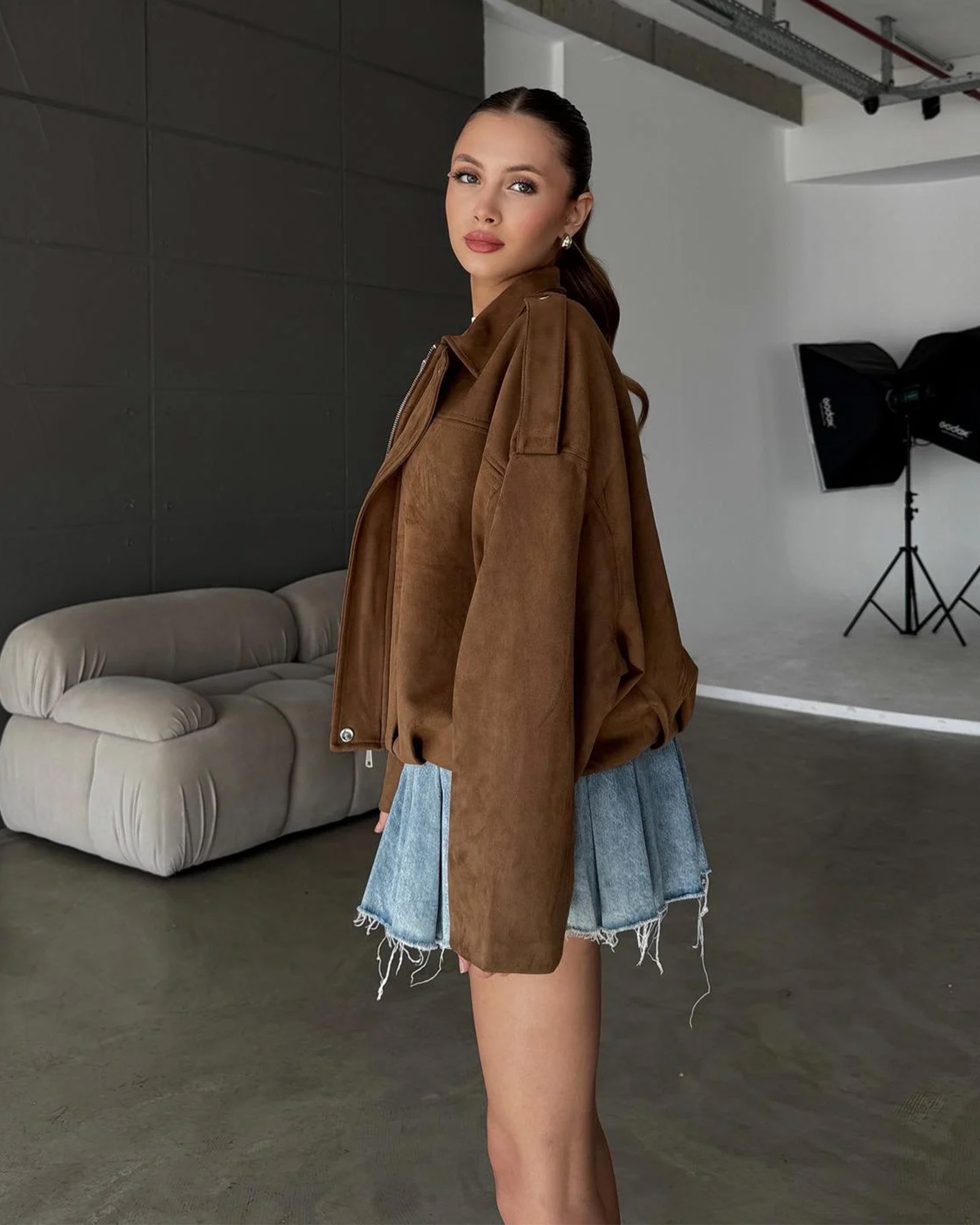 Moderni spoj ležernog kroja i sofisticiranog materijala – savršena za prelazne sezone i urbane kombinacije.