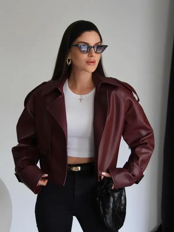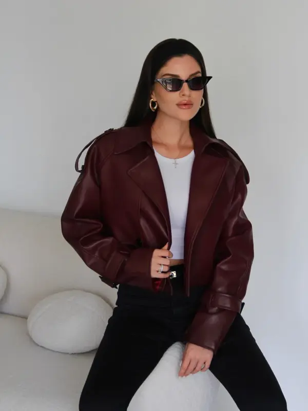 Ova crop jakna od umjetne kože nezaobilazan je komad za stylish outfite! Širi kroj daje opušten i moderni izgled, dok popularni model garantuje da ćete uvijek biti u trendu. Savršen dodatak za slojevite kombinacije – nosite je preko haljina, majica ili džempera!