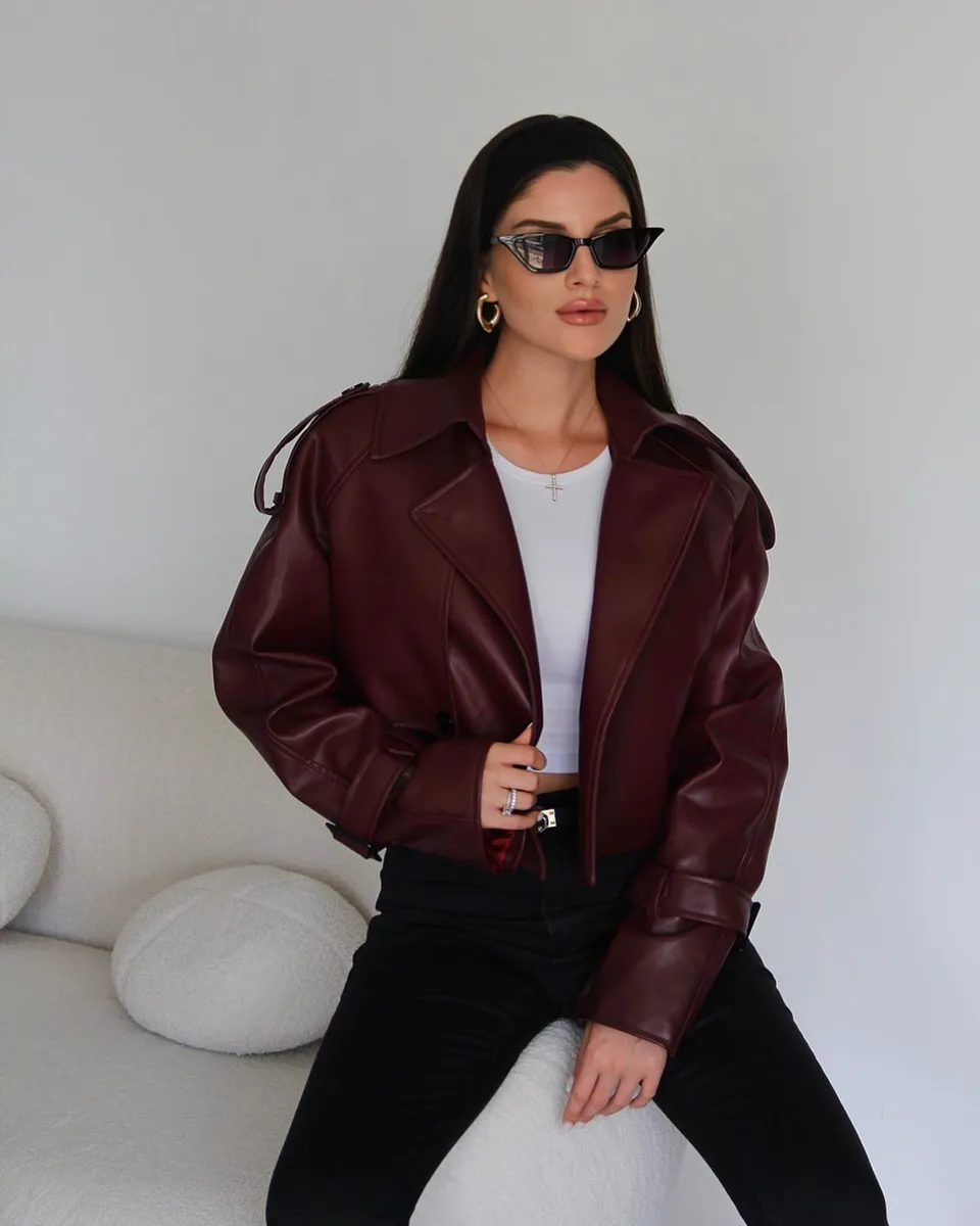 Ova crop jakna od umjetne kože nezaobilazan je komad za stylish outfite! Širi kroj daje opušten i moderni izgled, dok popularni model garantuje da ćete uvijek biti u trendu. Savršen dodatak za slojevite kombinacije – nosite je preko haljina, majica ili džempera!