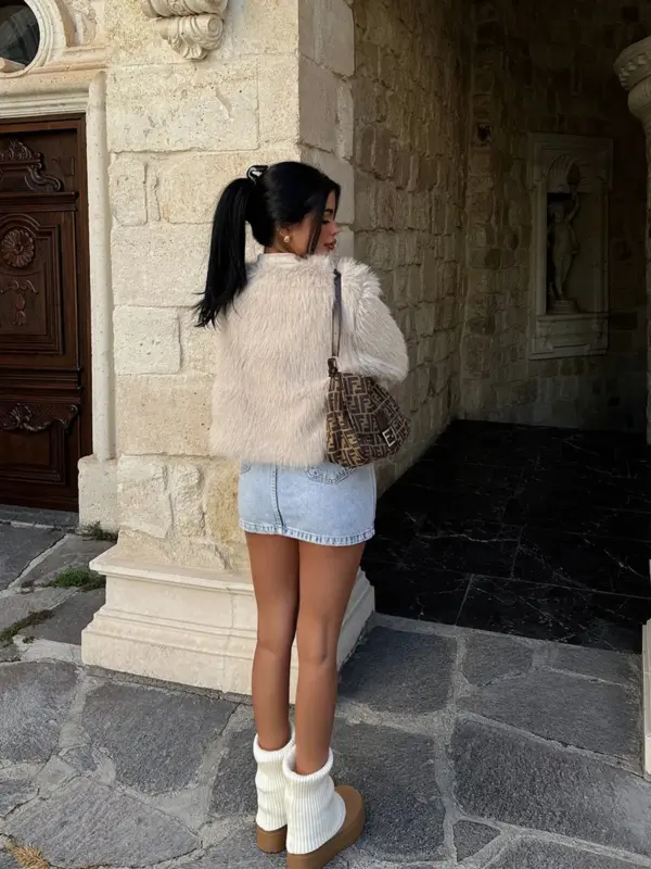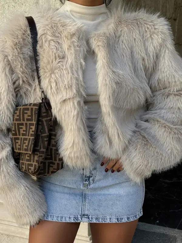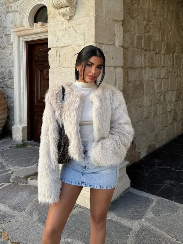 Ova cropped jakna od umjetnog zečjeg krzna savršen je komad za dodavanje luksuznog izgleda svim elegantnim kombinacijama. Bez patentnog zatvarača, ova jakna naglašava minimalistički stil i savršeno se slaže s haljinama i svečanim outfitima, ali i s ležernijim outfitima poput traperica ili suknji. Izuzetno mekana i topla, idealna je za hladnije dane kada želite zadržati sofisticiran izgled uz udobnost.