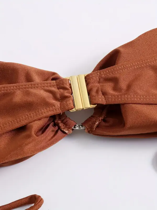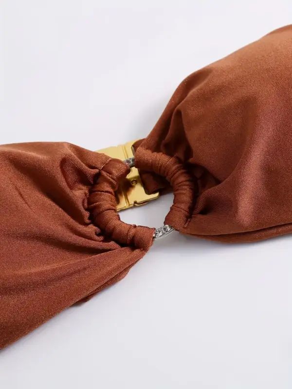 🔹 Gornji dio: Bandeau dizajn sa metalnim detaljem u sredini, bez naramenica