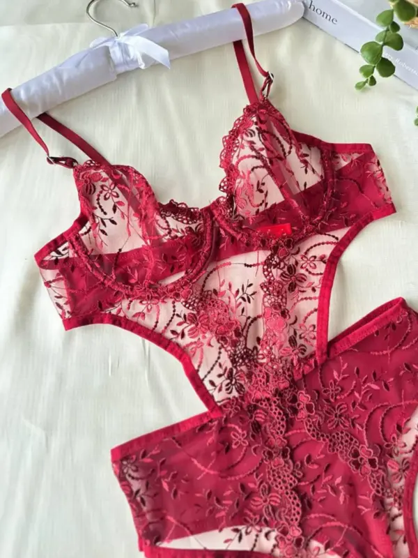 Lingerie body u kombinaciji mrežice i veza s podesivim naramenicama na gornjem dijelu . Upute za održavanje: pranje na 30°C ili ručno, ne sušiti u sušilici, ne peglati.