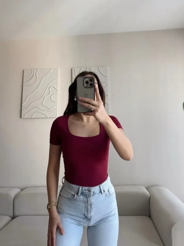 Elegantna, a istovremeno praktična – ova uska majica s modernim kvadratnim dekolteom savršeno naglašava vrat i ramena. Izrađena od elastičnog, mekanog materijala koji se lijepo prilagođava figuri i pruža udobnost za svaki dan.