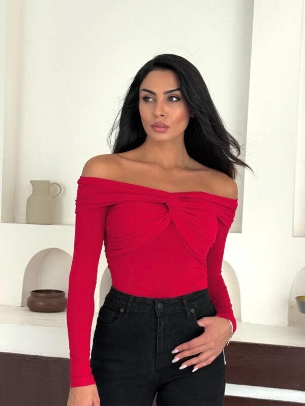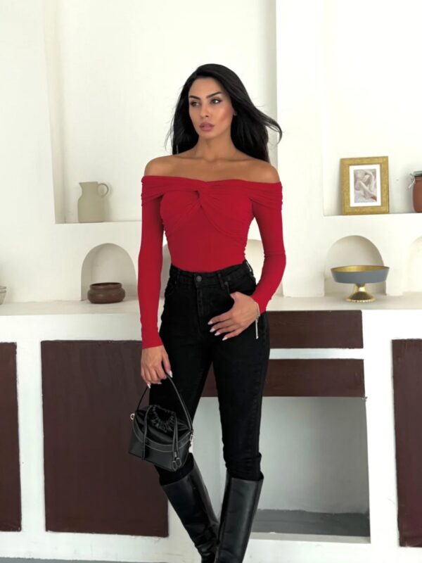 Ova off-shoulder majica je pravi statement komad za sve koji vole kombinovati jednostavno i upečatljivo. Gornji dio sa twist detaljem daje cool, romantičan efekat, dok kroj lijepo prati liniju tijela i naglašava siluetu.