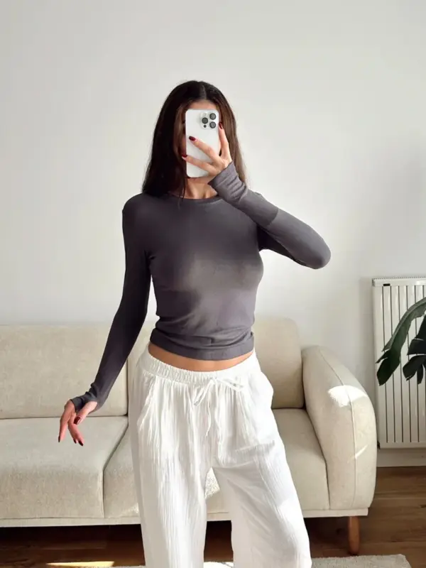 Jednostavna, a efektna majica dugih rukavakoja se savršeno uklapa u svaki stil — od ležernog do elegantnog.
