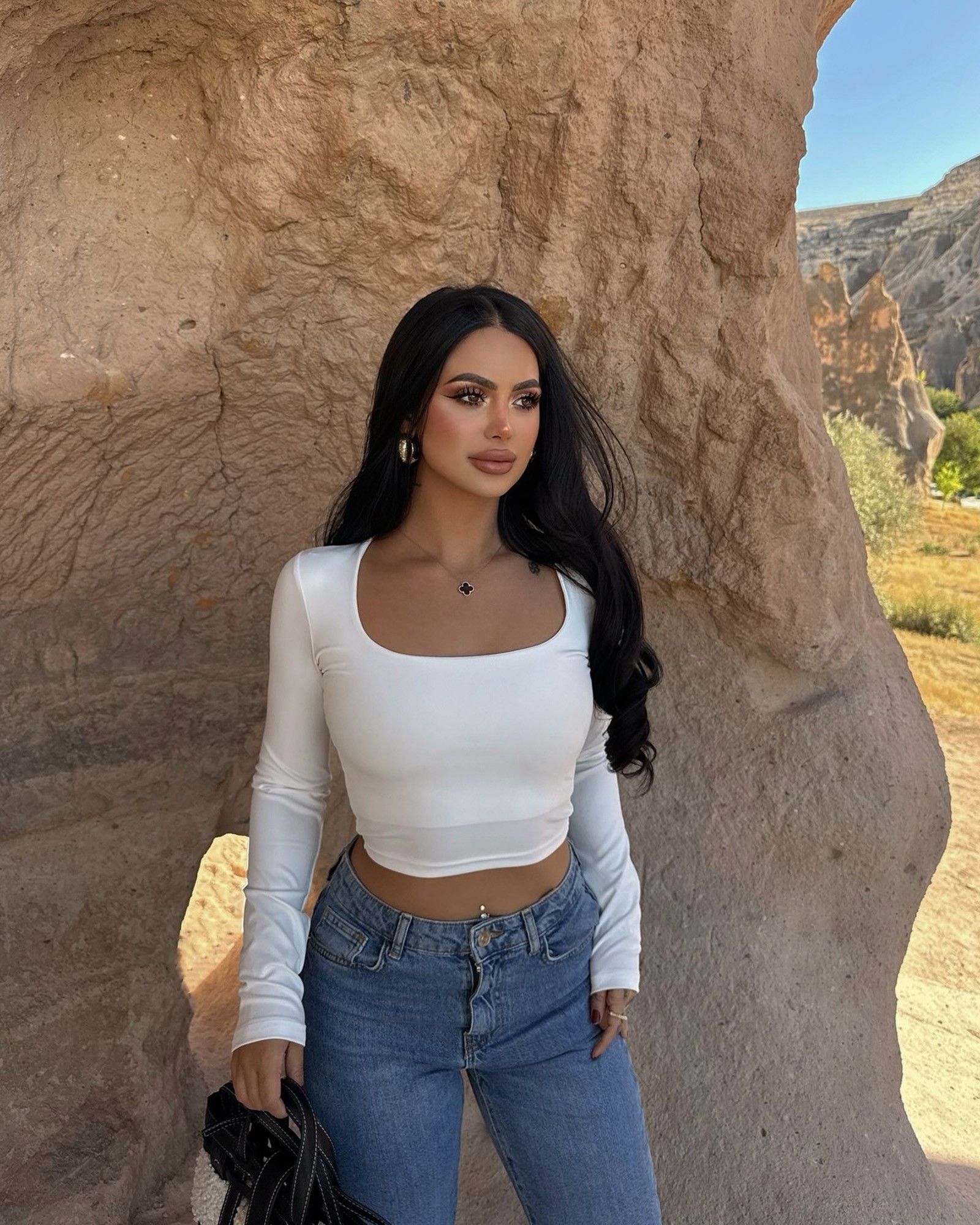 • Square neckline – moderan, čist izrez koji ističe vrat i ramena