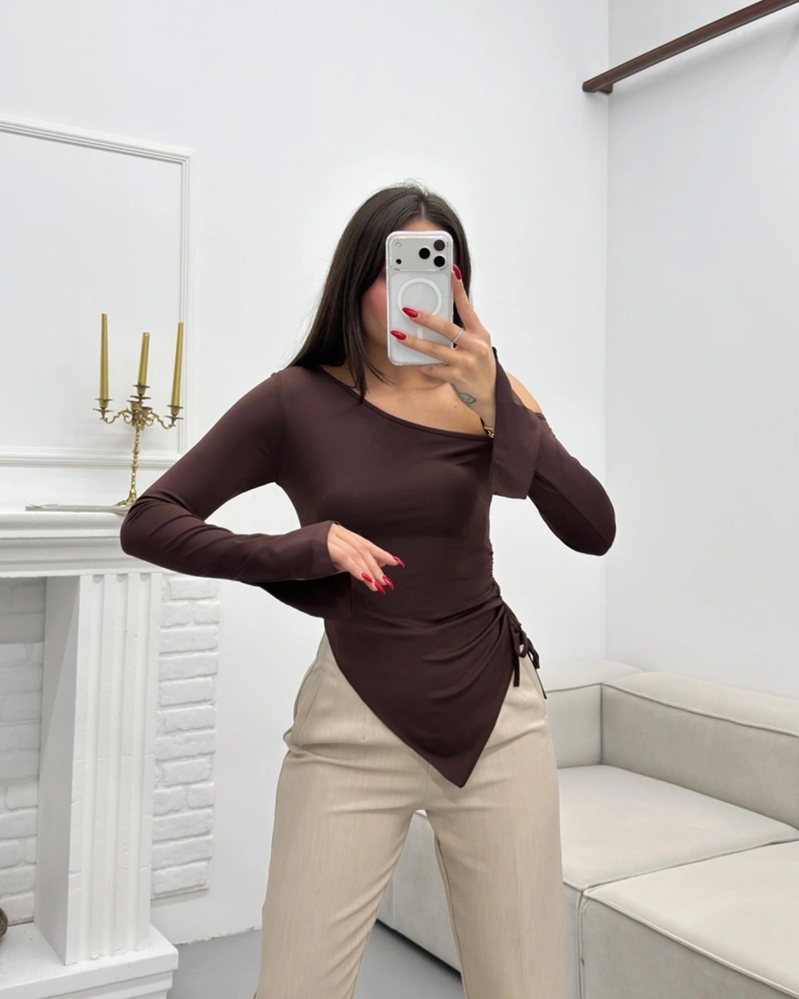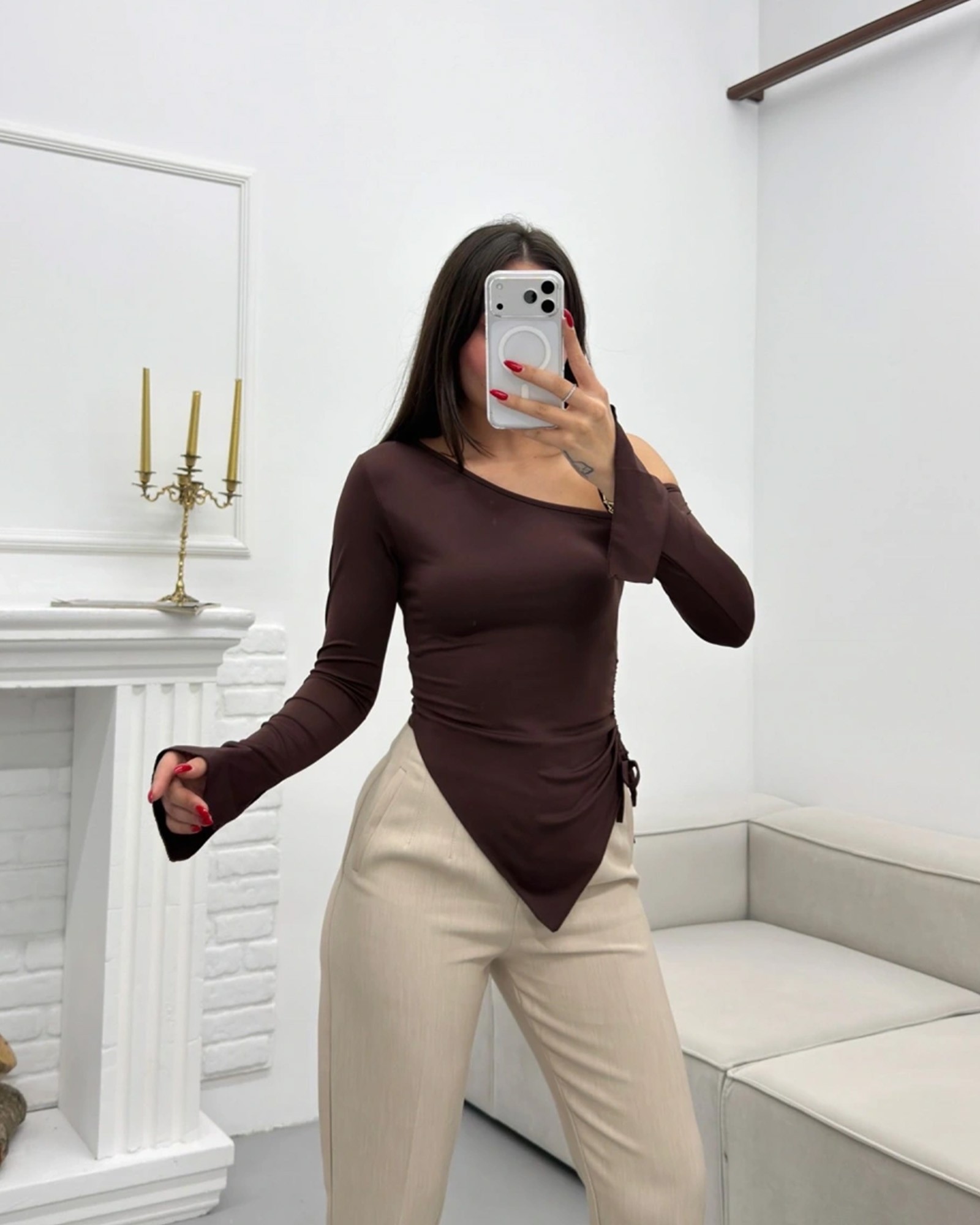 👚 Asimetrična majica dugih rukava – moderan kroj sa ženstvenim akcentom