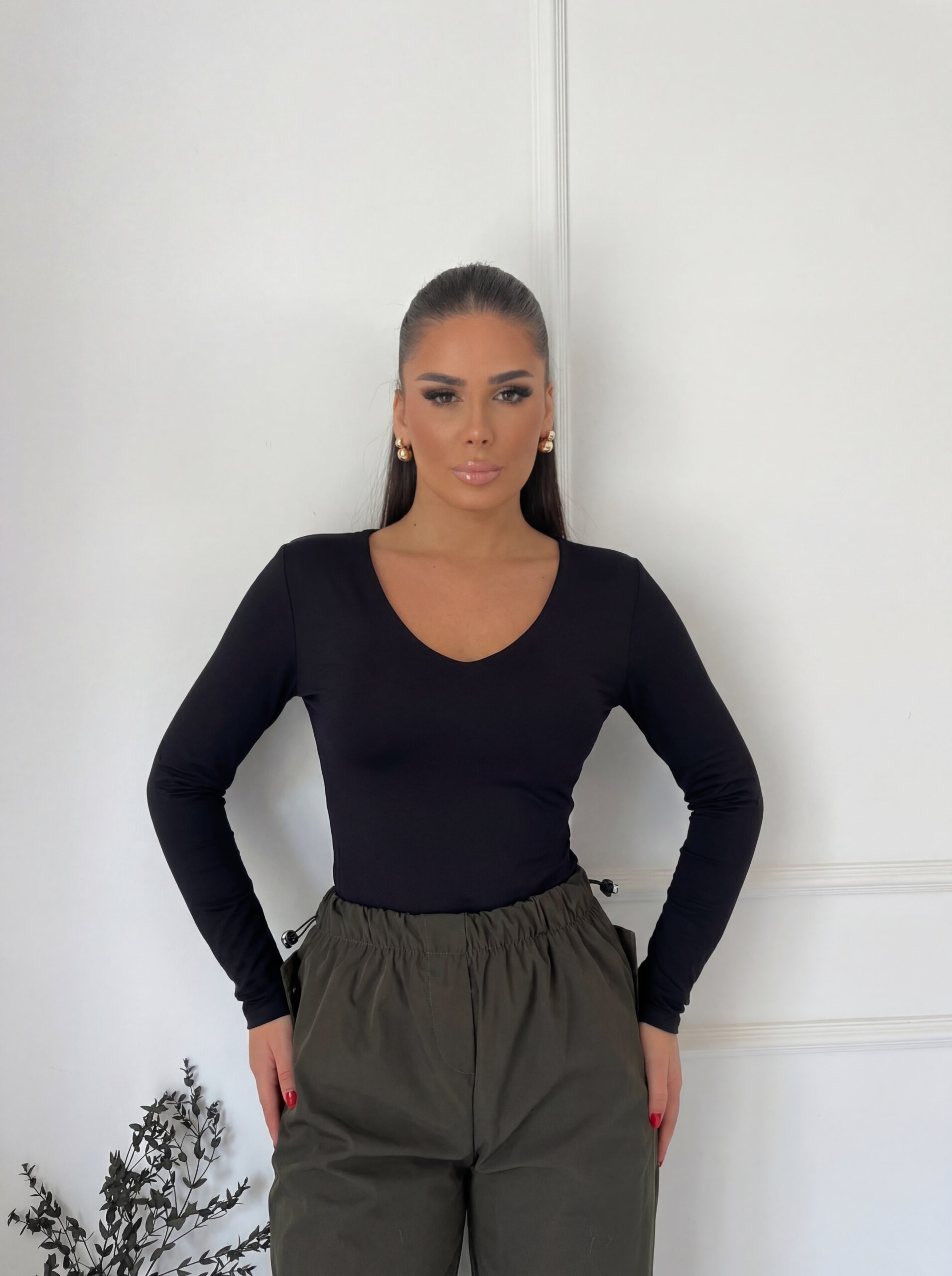 Basic majica s V okovratnikom i prorezima za prste