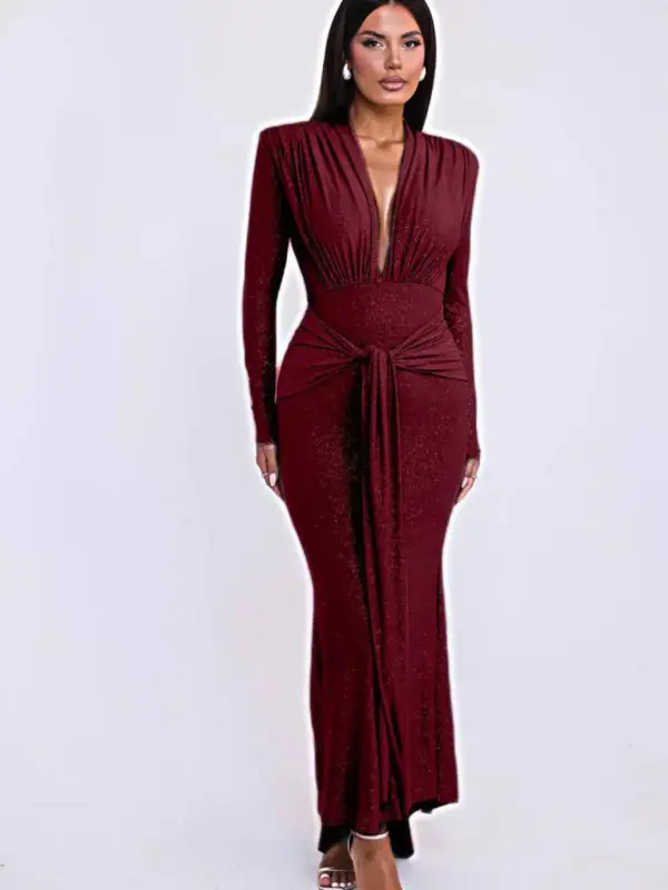 Maxi elastična haljina sa šljokicama. Šljokice blago opadaju, na ramenima su spužvice, blago providna.