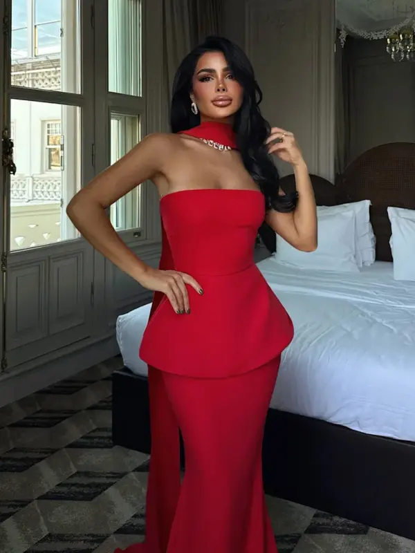 Savršena večernja haljina koja spaja sofisticiranost, eleganciju i ženstvenost — idealna za svečane prilike i glamurozne događaje.