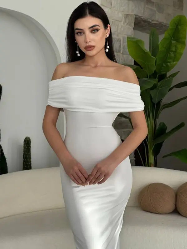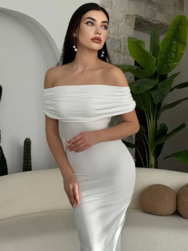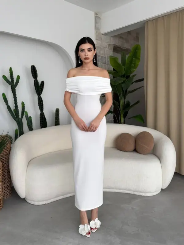 Maxi haljina spuštenih ramena – ženstvena elegancija! ✨