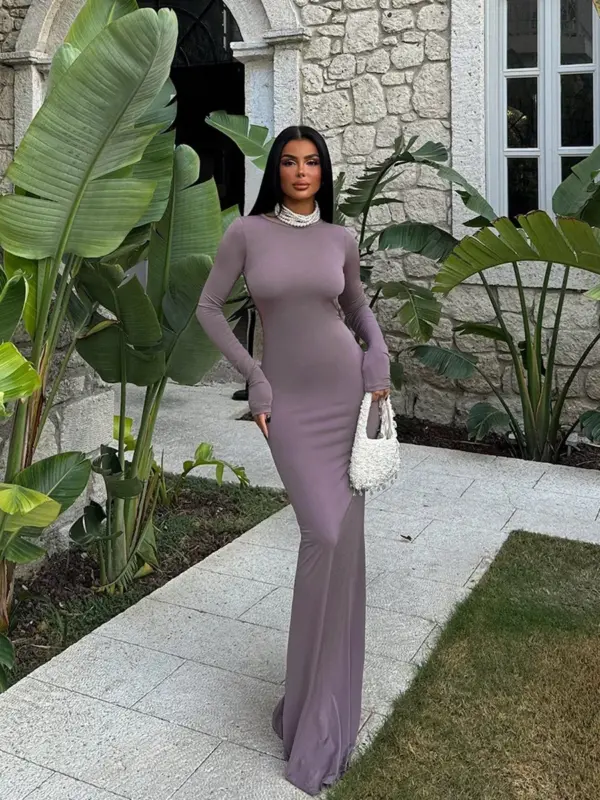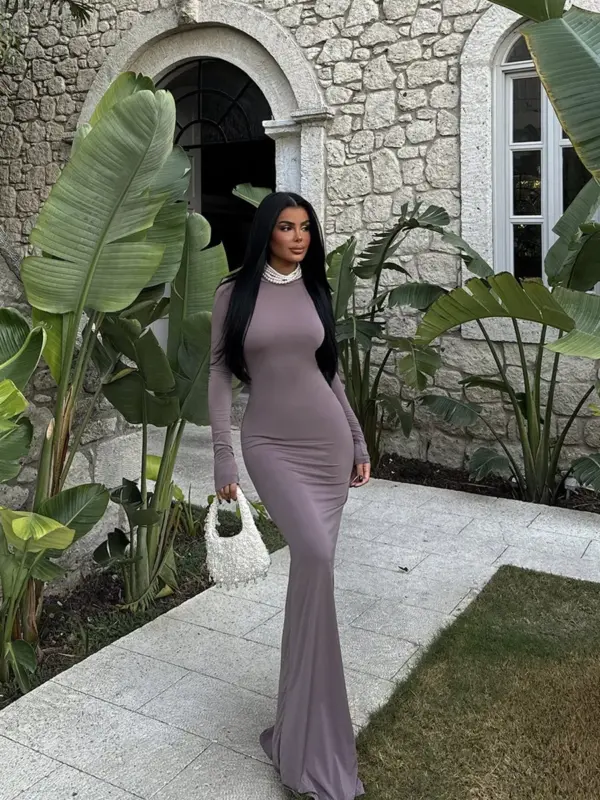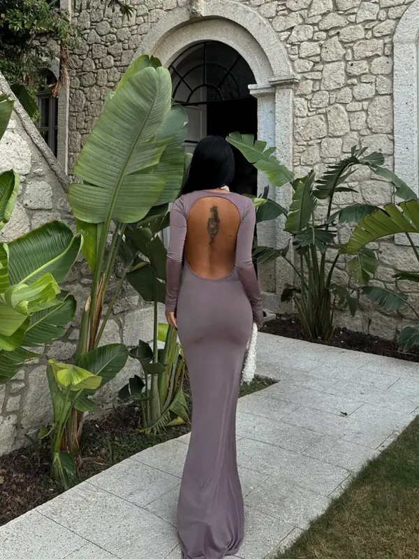 Maxi elastična haljina sa otvorenim leđima, blago providna.