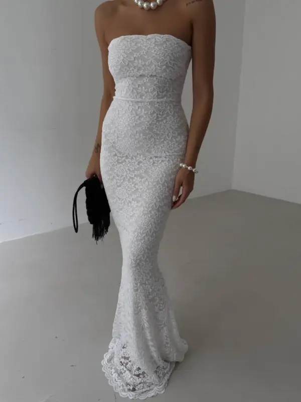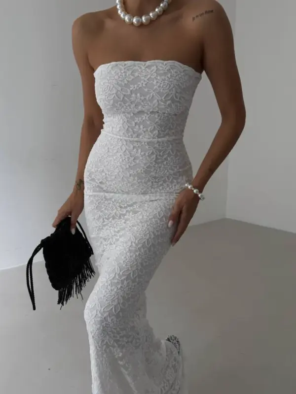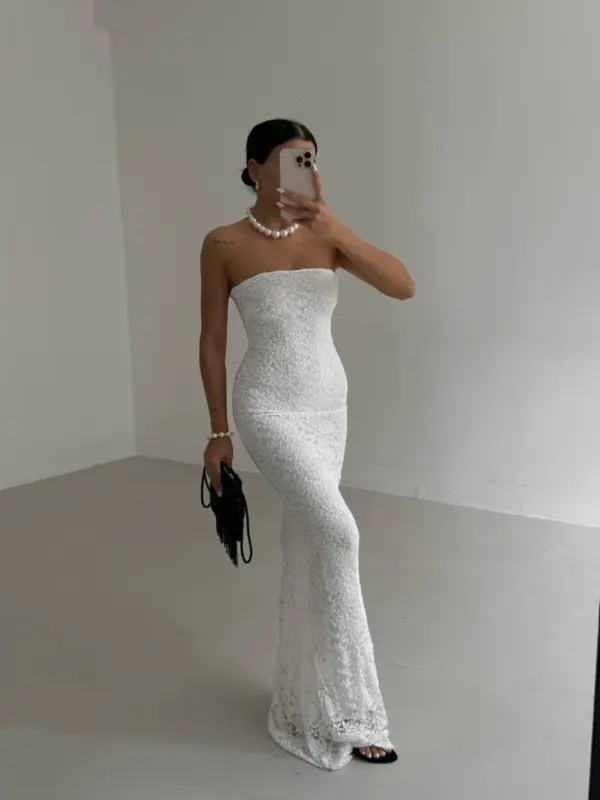 ✨ Elegantna čipkana maxi haljina bez bretela ✨