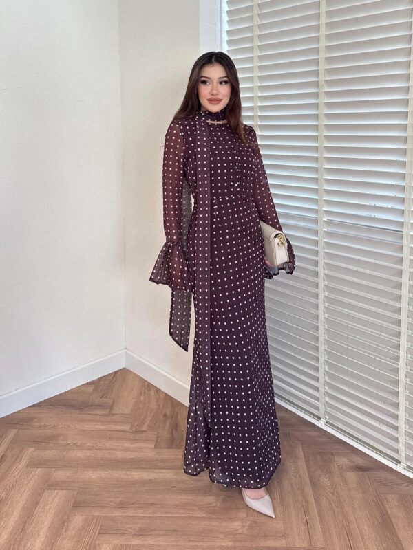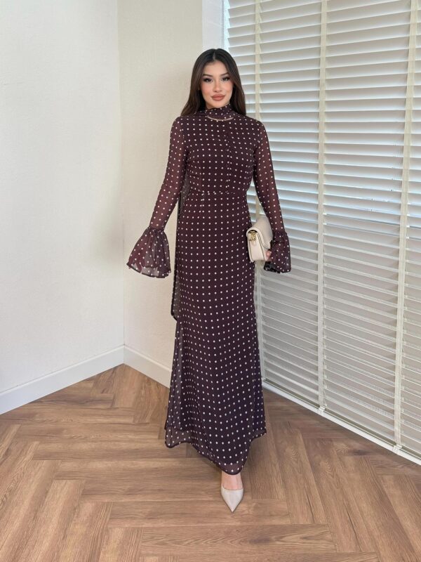 Ova predivna tufnasta haljina je pravi klasik koji naglašava figuru i daje onu bezvremensku, damsku eleganciju. Lagana, prozračna tkanina nježno prati tijelo, dok visoka kragna i romantični voluminozni rukavi dodaju poseban vintage šarm. Idealna je za svečane prilike, večere, evente ili trenutke kada želiš izgledati besprijekorno bez previše truda.