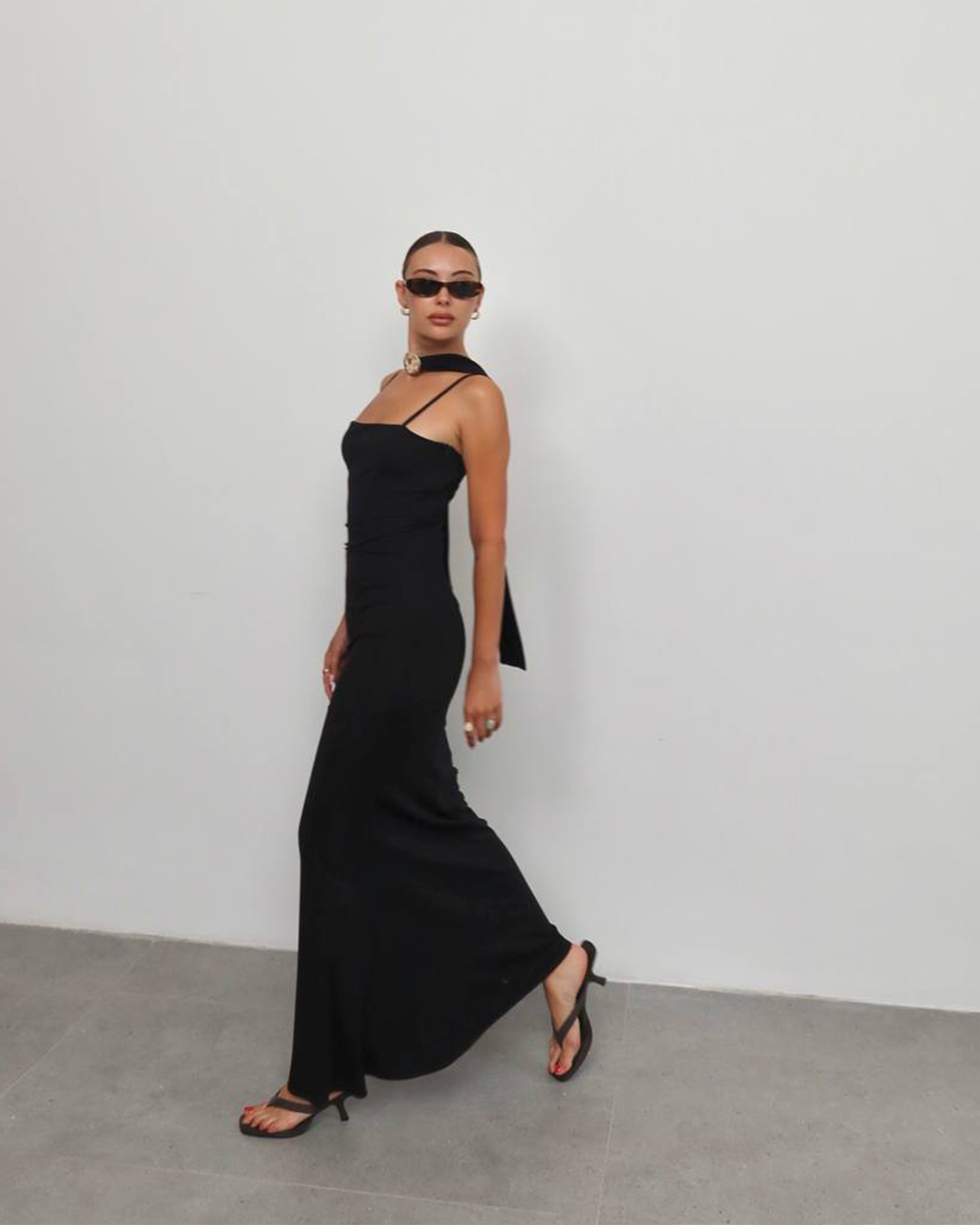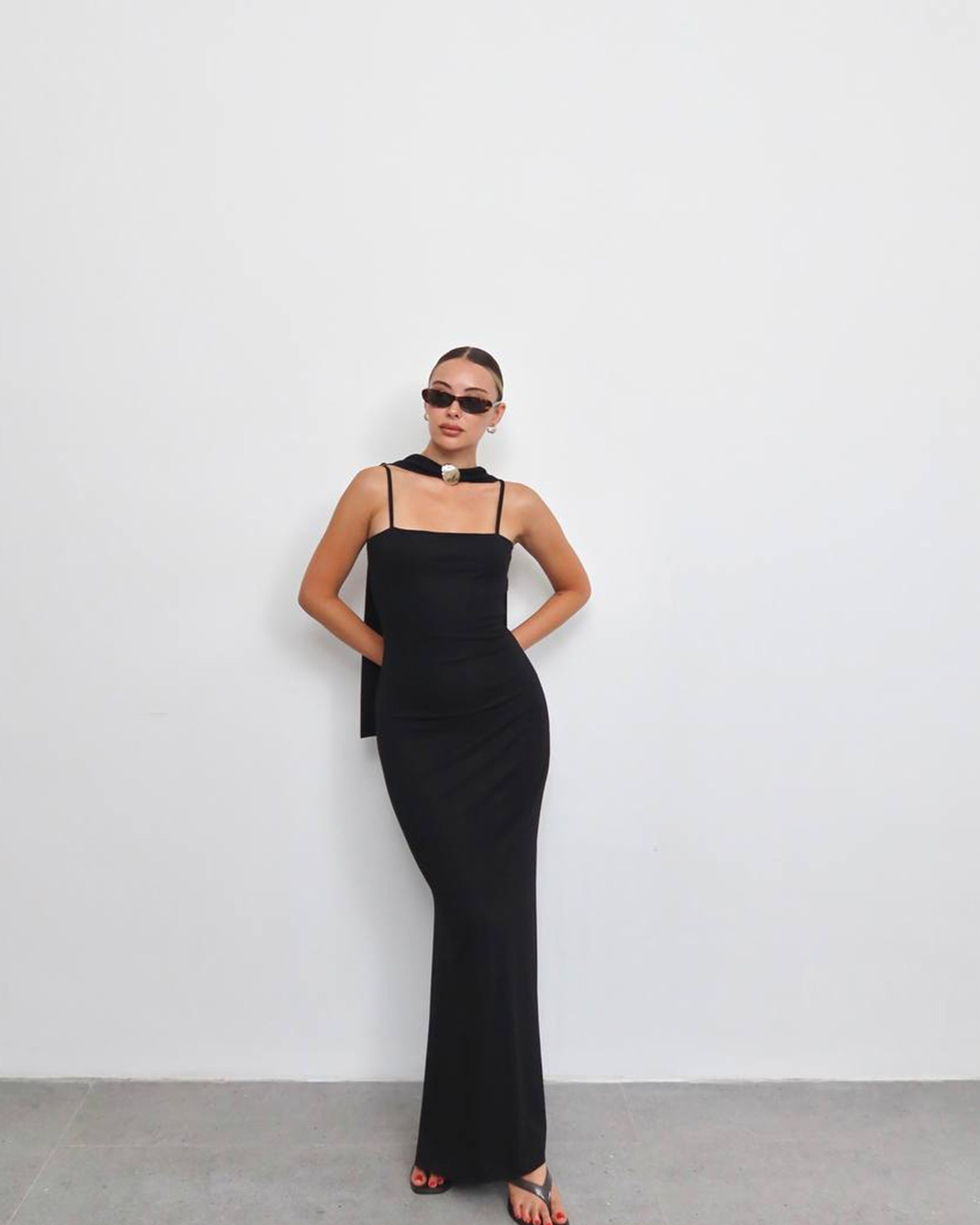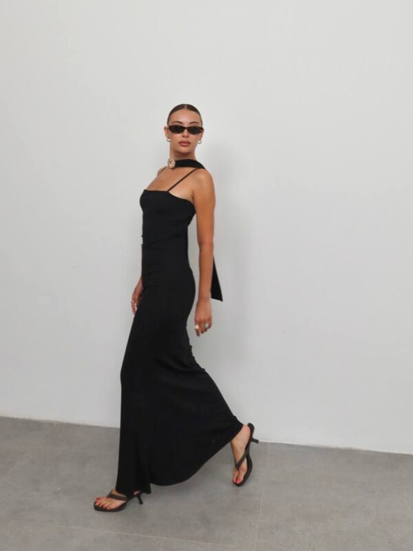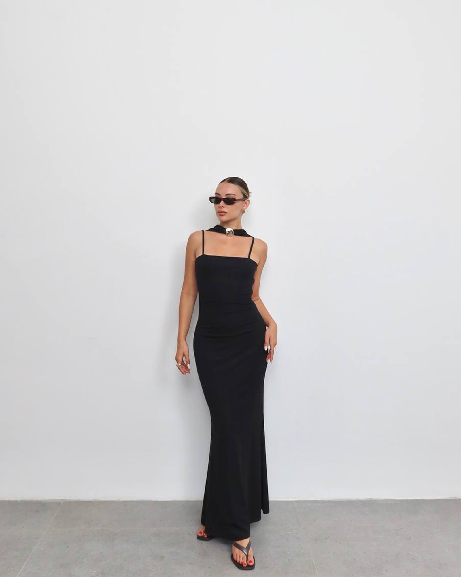 Čista, minimalistička elegancija koja prati liniju tijela i diskretno se širi pri dnu – spremna za svečane prilike i elegantne večeri.