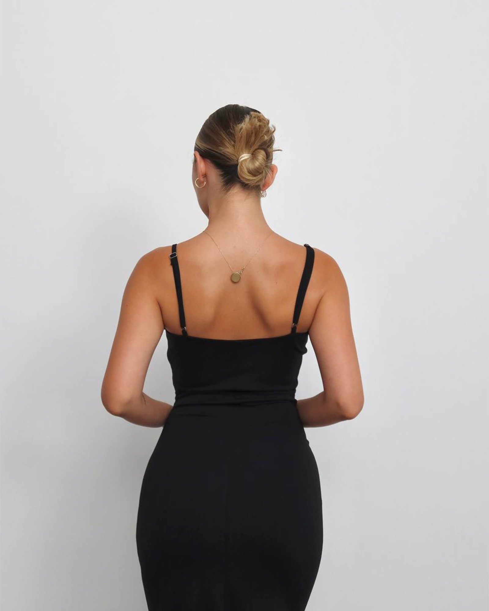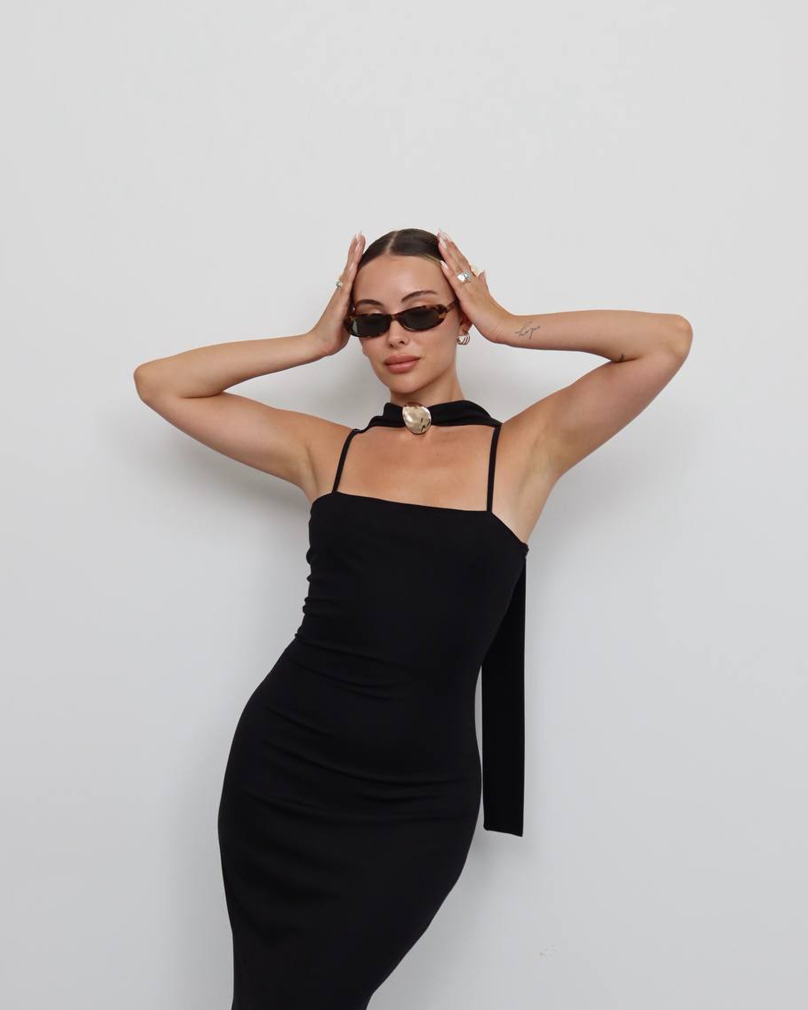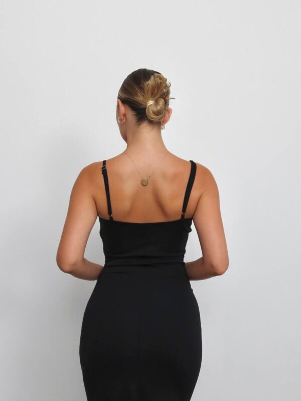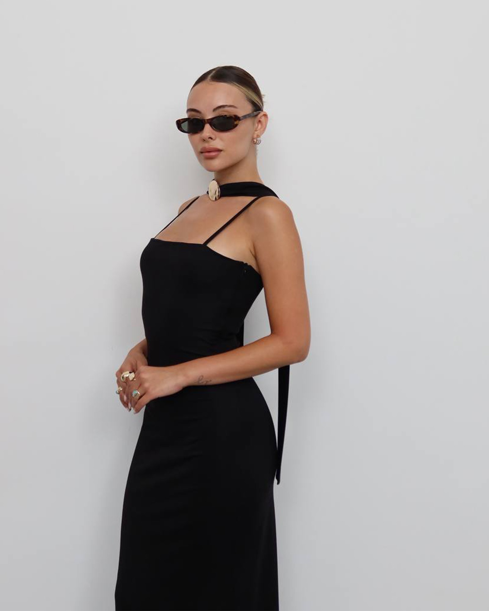 Čista, minimalistička elegancija koja prati liniju tijela i diskretno se širi pri dnu – spremna za svečane prilike i elegantne večeri.