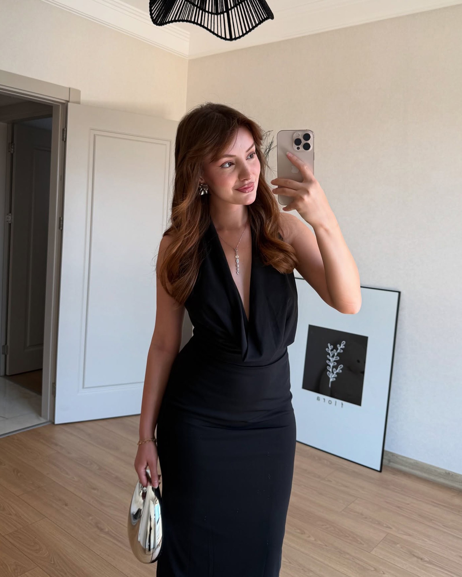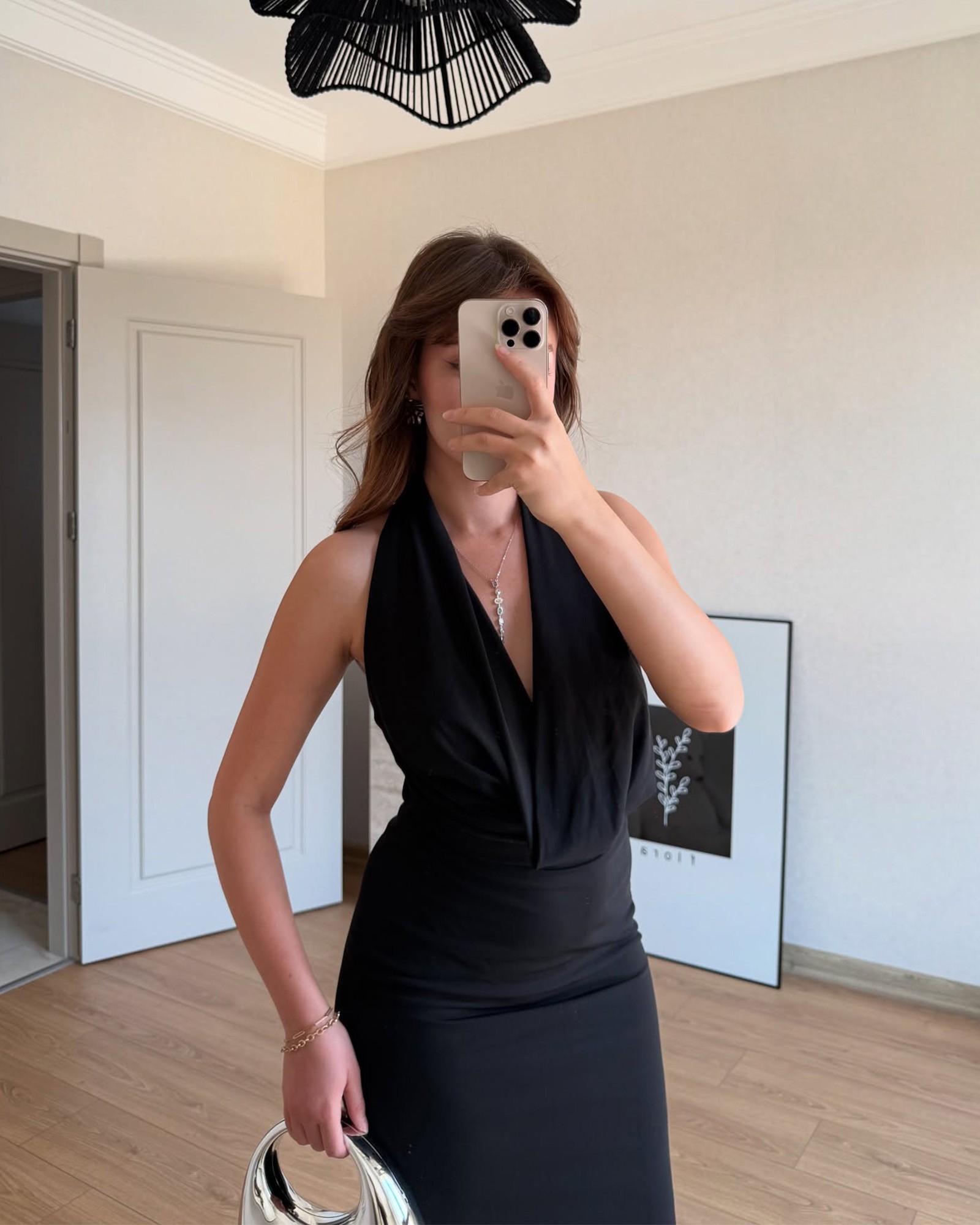 Haljina koja spaja besprijekornu siluetu i suptilan detalj, savršena za večernje izlaske, svečane prilike i profinjene ljetne kompozicije.