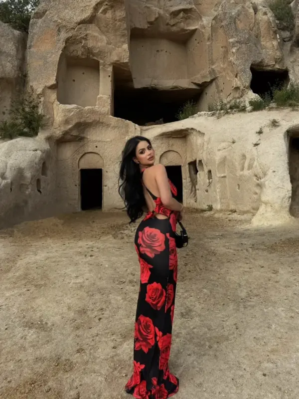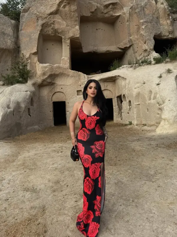 ✨ Dramatična maxi haljina s printom ruža i izrezima ✨