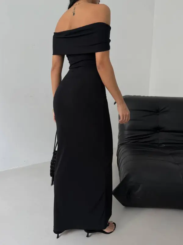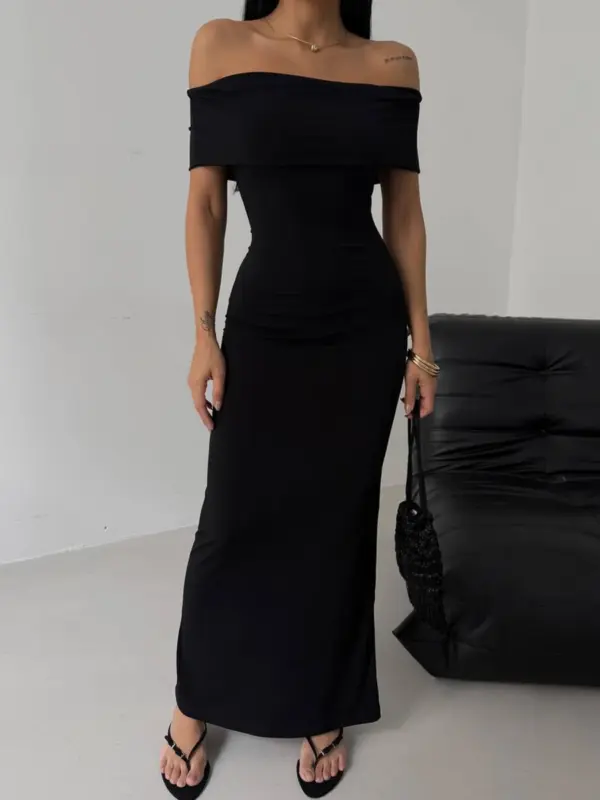 Maxi haljina sa spuštenim ramenima – elegancija i udobnost u jednom