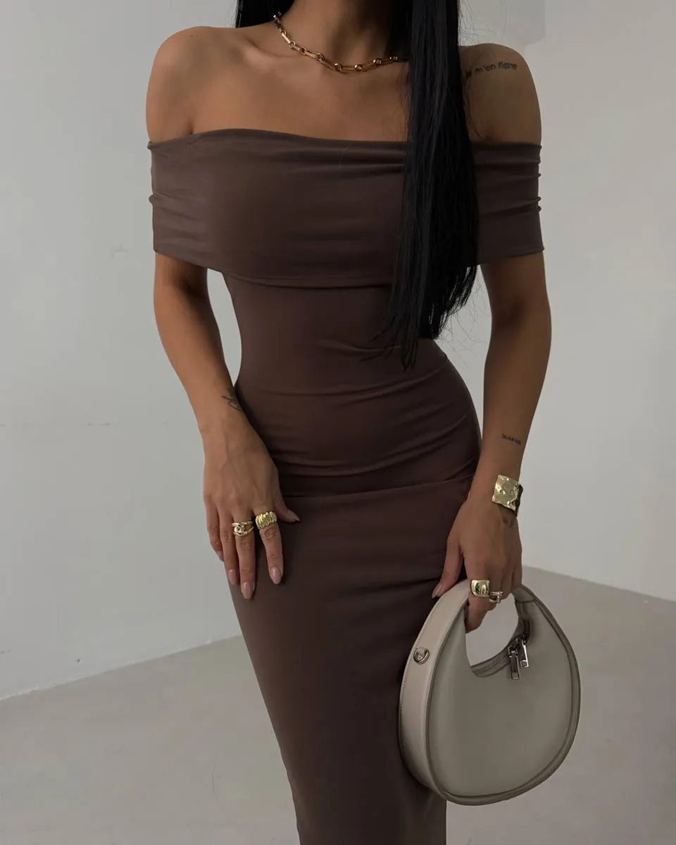 Maxi haljina sa spuštenim ramenima – elegancija i udobnost u jednom