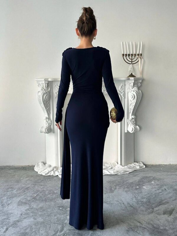 Ako želiš haljinu koja izgleda kao da je rađena po mjeri, ova duga silueta je pravi jackpot. Elastična, mekana tkanina savršeno se prilagođava tijelu, dok strateški drapirani dijelovi rade ono što volimo – naglašavaju obline, izdužuju figuru i daju onaj glam momenat bez ikakvog truda.