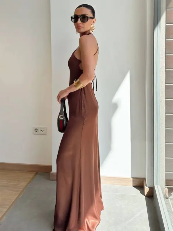 ✨ Luksuzna satenska duga haljina s otvorenim leđima ✨