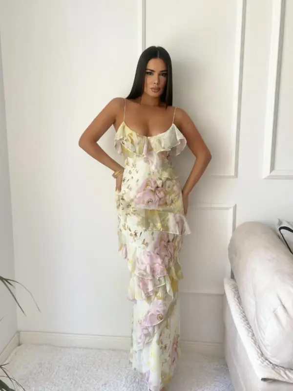 🌸 Pastelna maxi haljina s lepršavim volanima 🌸