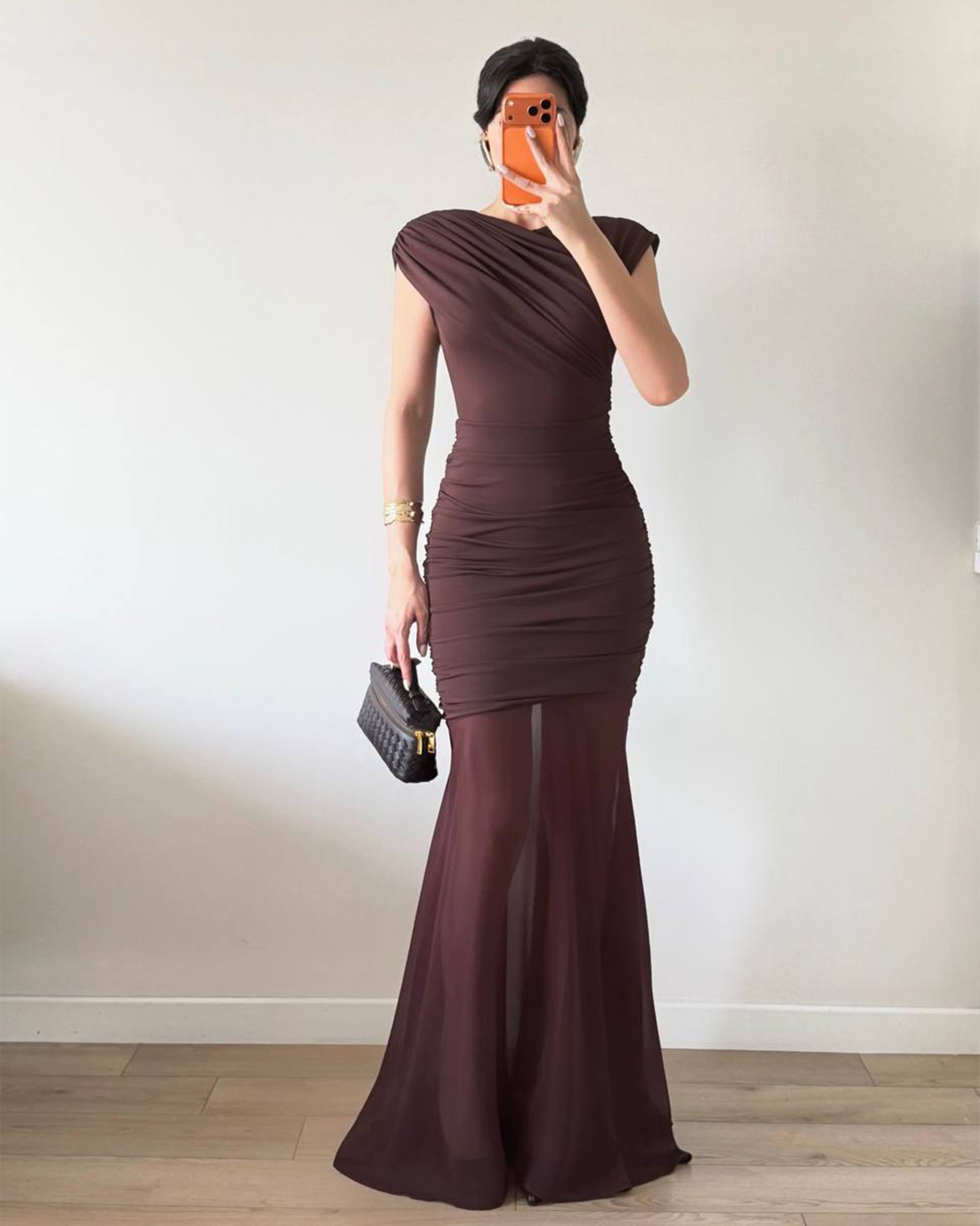 Ova haljina je idealan izbor ako želiš da izgledaš sofisticirano, ženstveno i potpuno chic bez puno truda. Kombinacija drapiranog gornjeg dijela i donjeg providnog sloja stvara wow efekat koji produžuje figuru i naglašava struk.