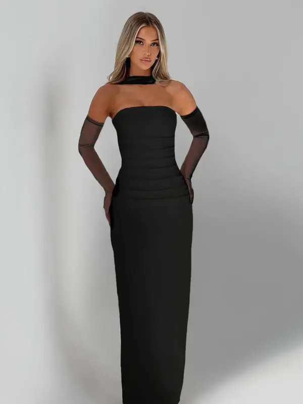 🔹 Kroj: Maxi haljina bez bretela, uska silueta