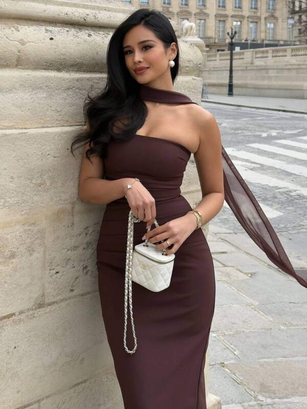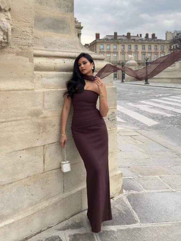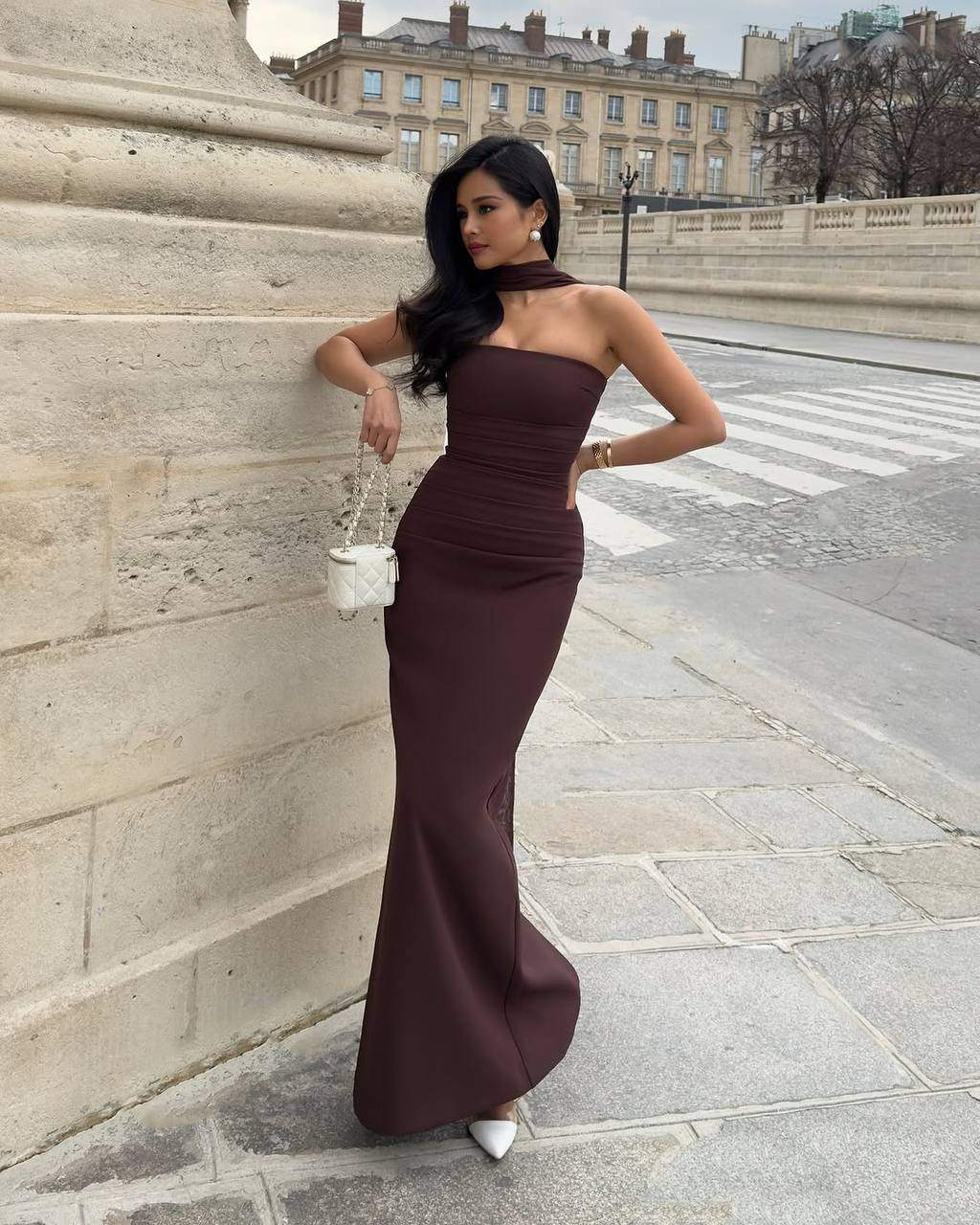 🔹 Kroj: Maxi haljina bez bretela, uska silueta