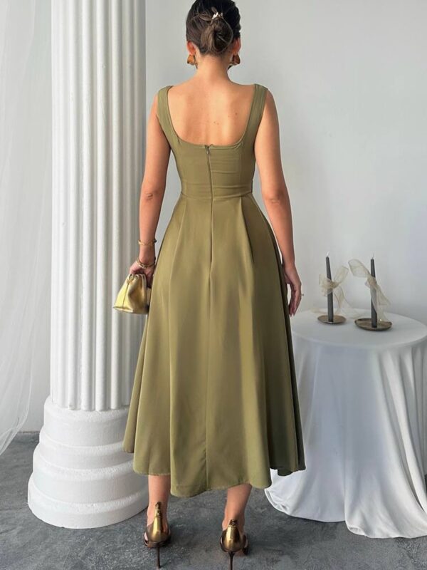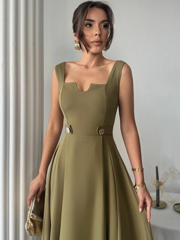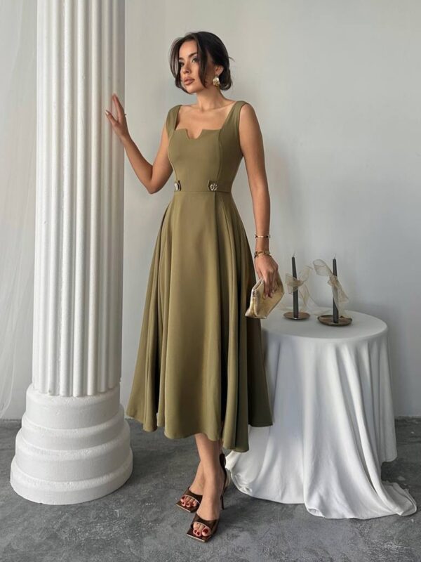 Savršen spoj profinjenosti i ženstvenog kroja – ova midi haljina ističe struk i stvara prelijepu A-siluetu, idealnu za svečane i svakodnevne prilike.