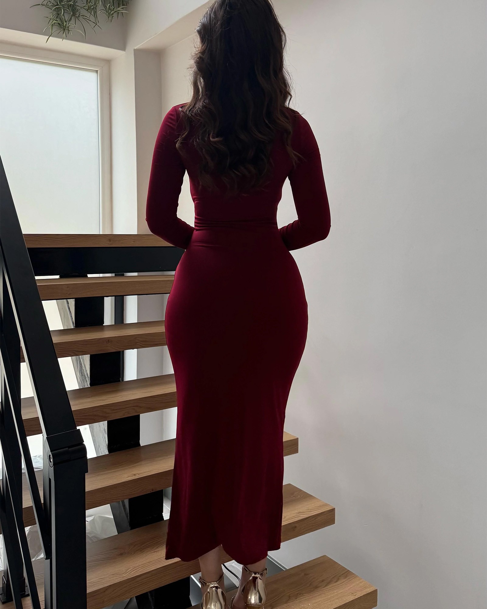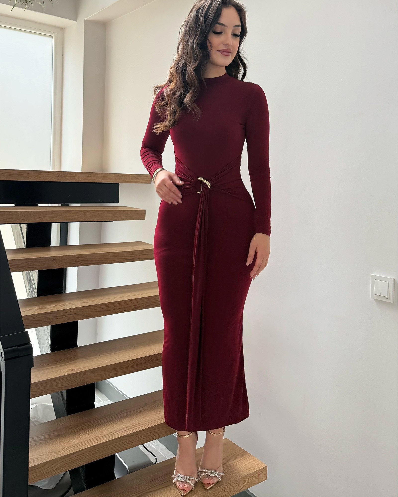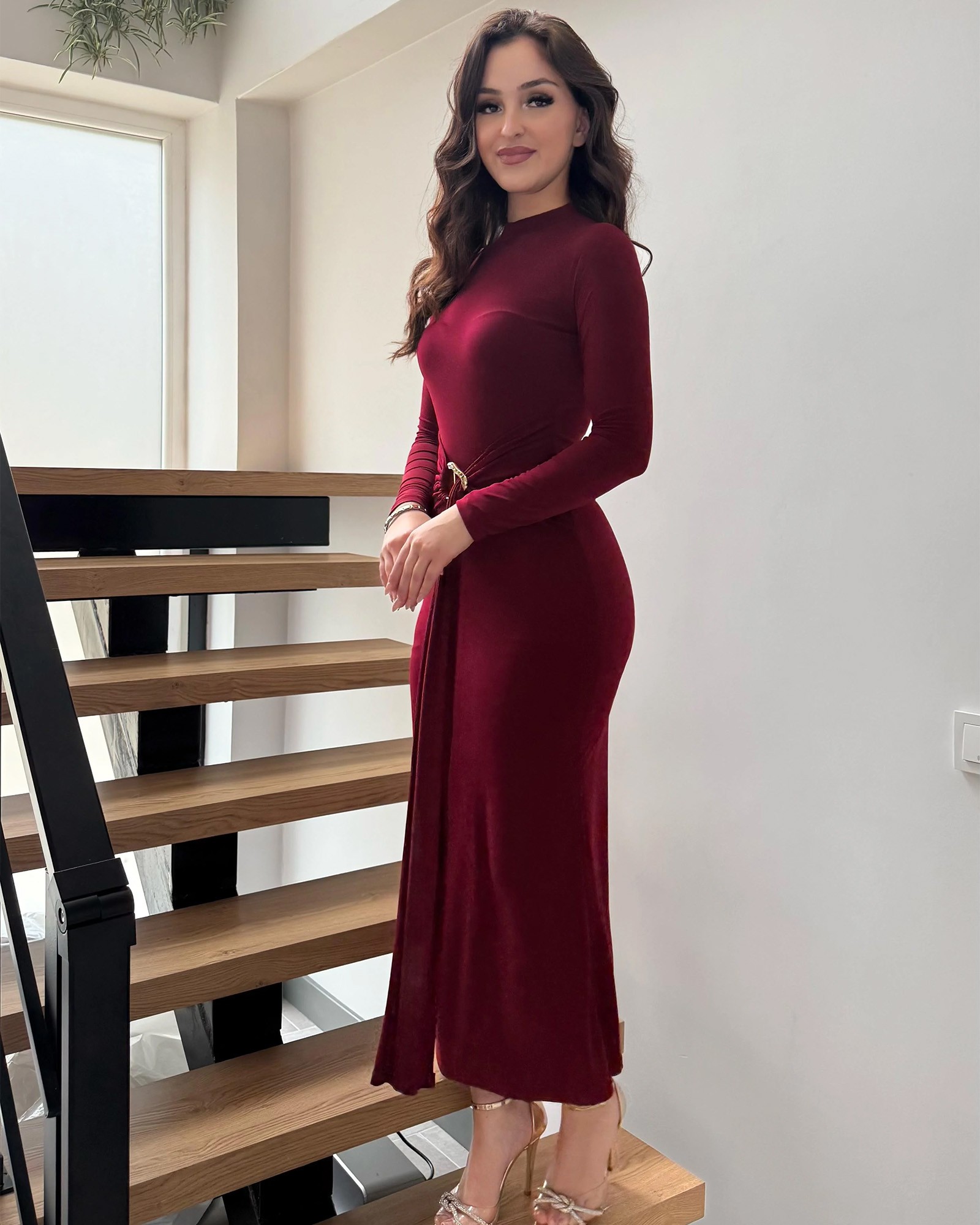 👗 Midi haljina sa drapiranim detaljem – profinjena elegancija za posebne prilike
