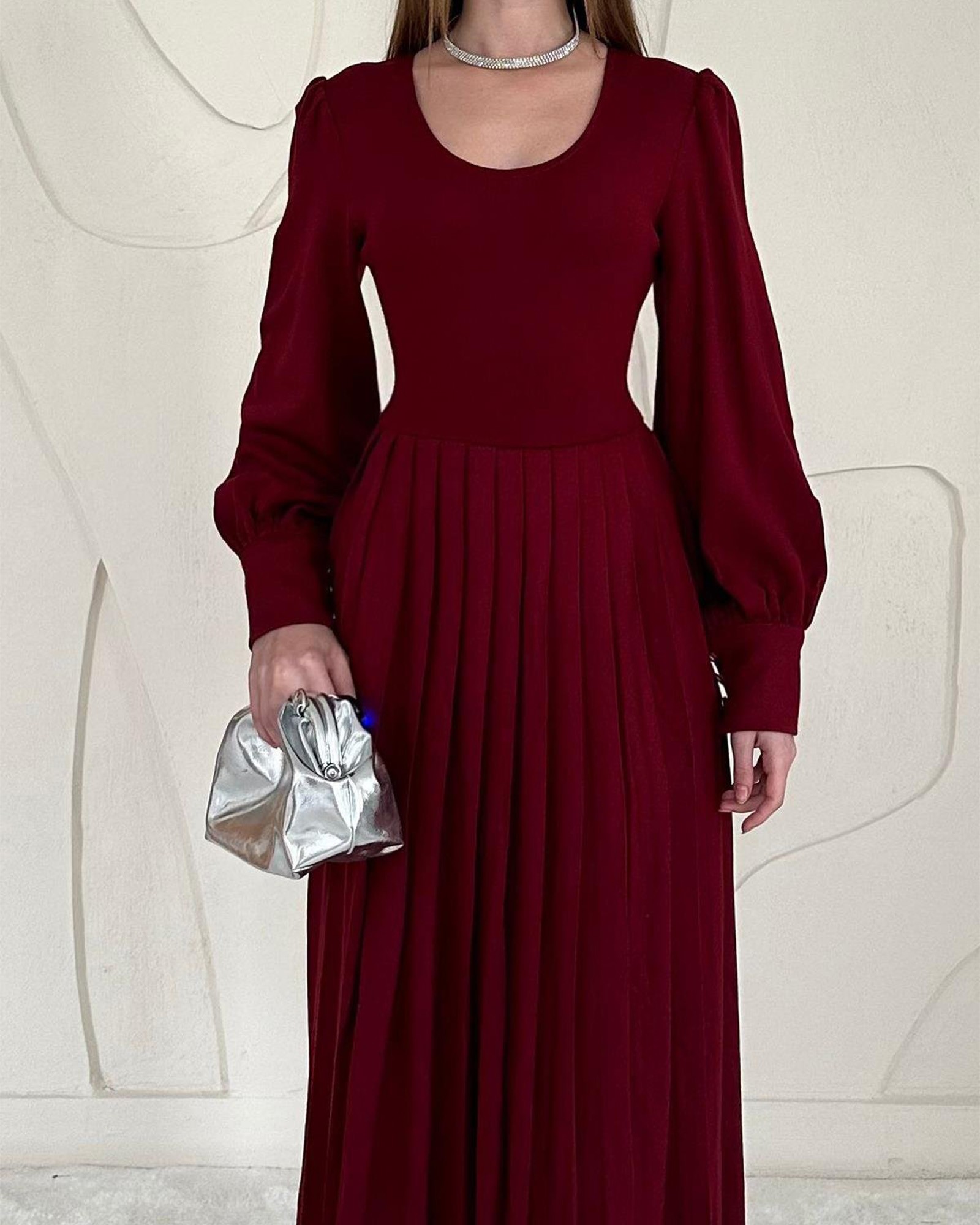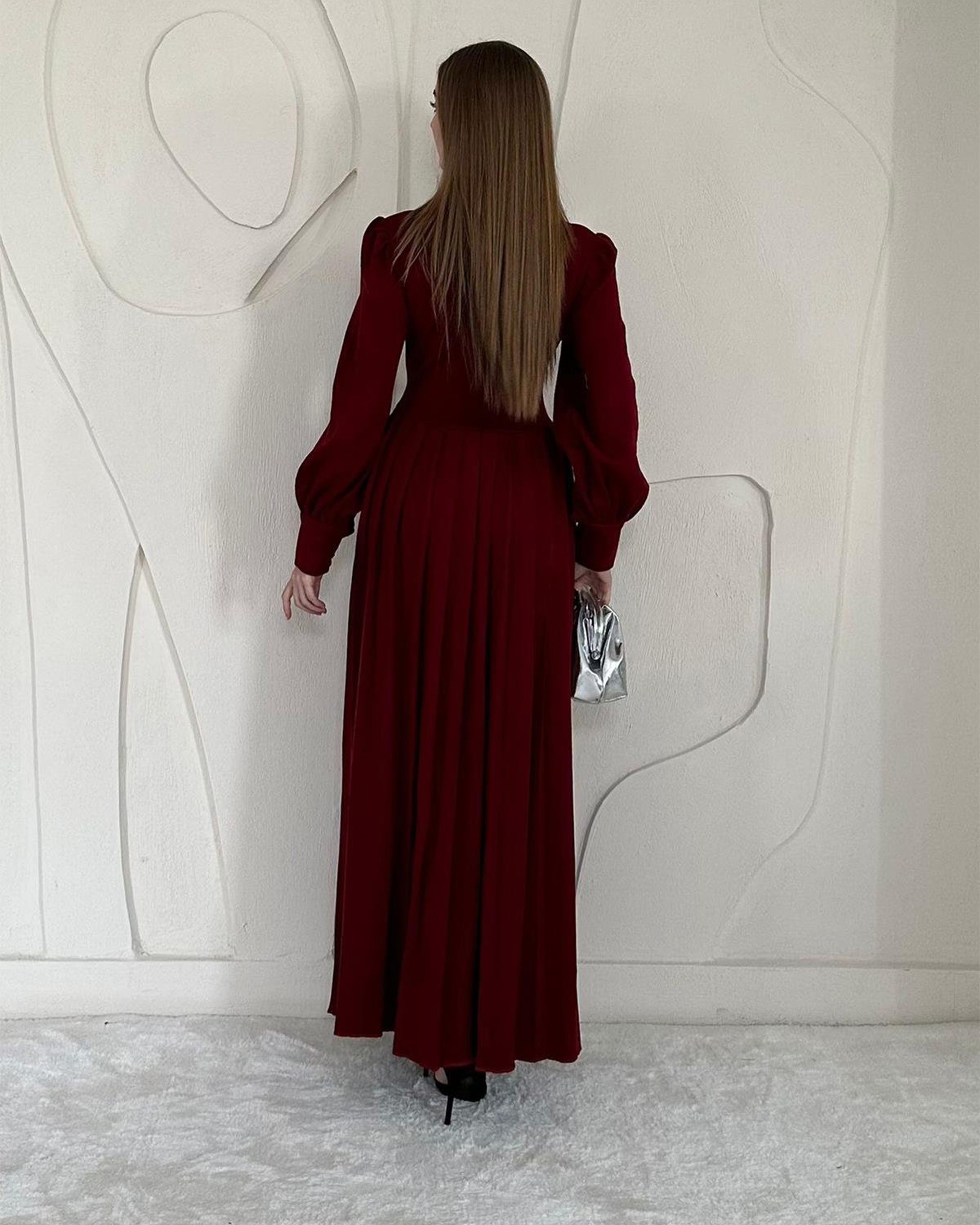 Elegantna i bezvremenska midi haljina koja kombinuje udobnost i profinjenost — idealna za svečane prilike, večere ili poslovne događaje.