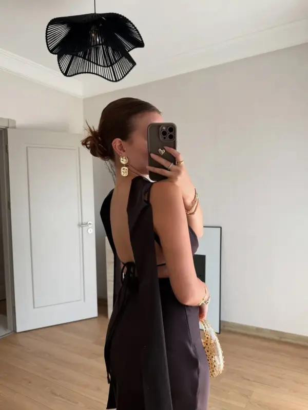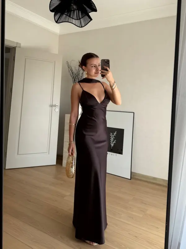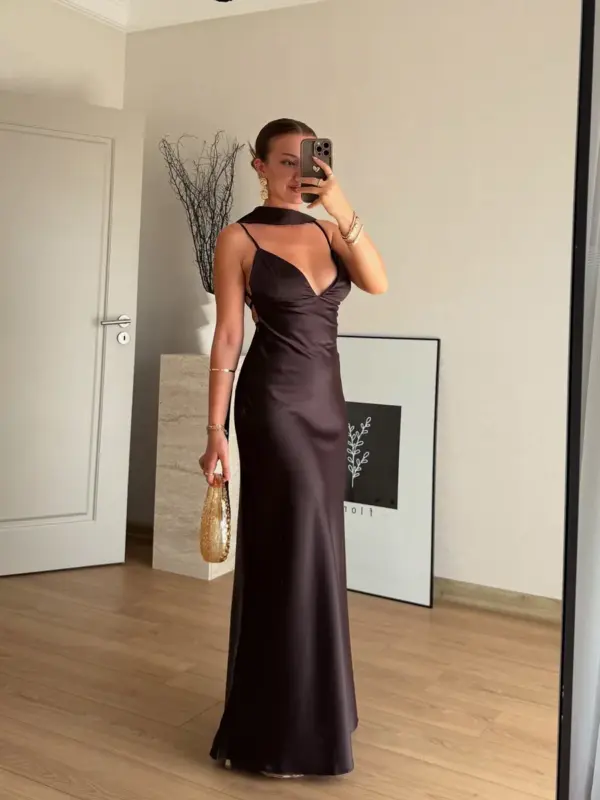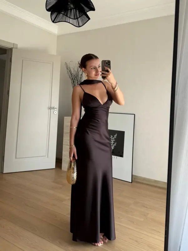 ✨ Elegantan slip model s otvorenim leđima i šalom ✨