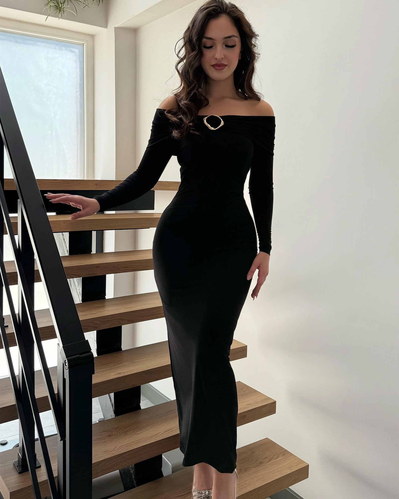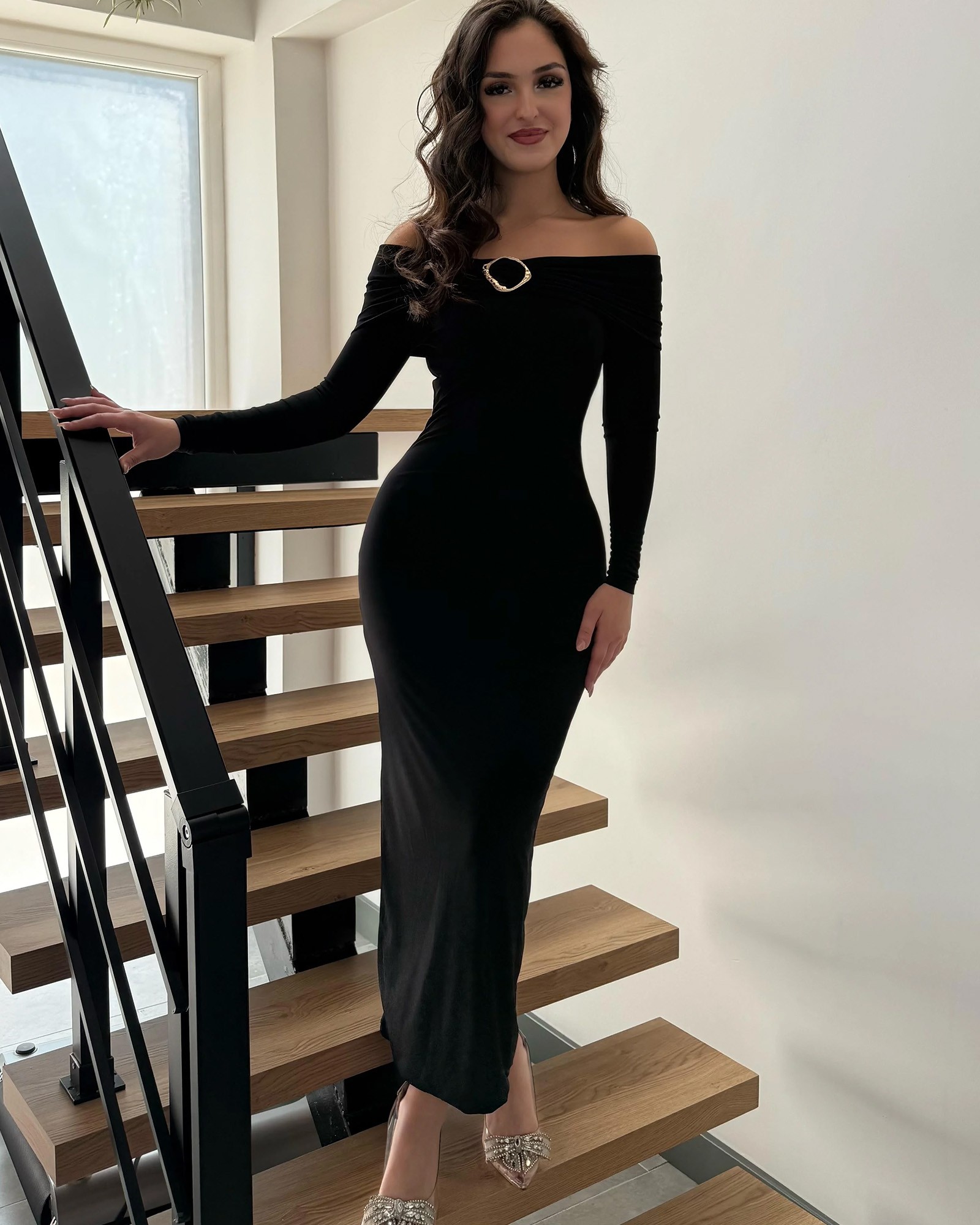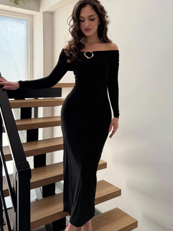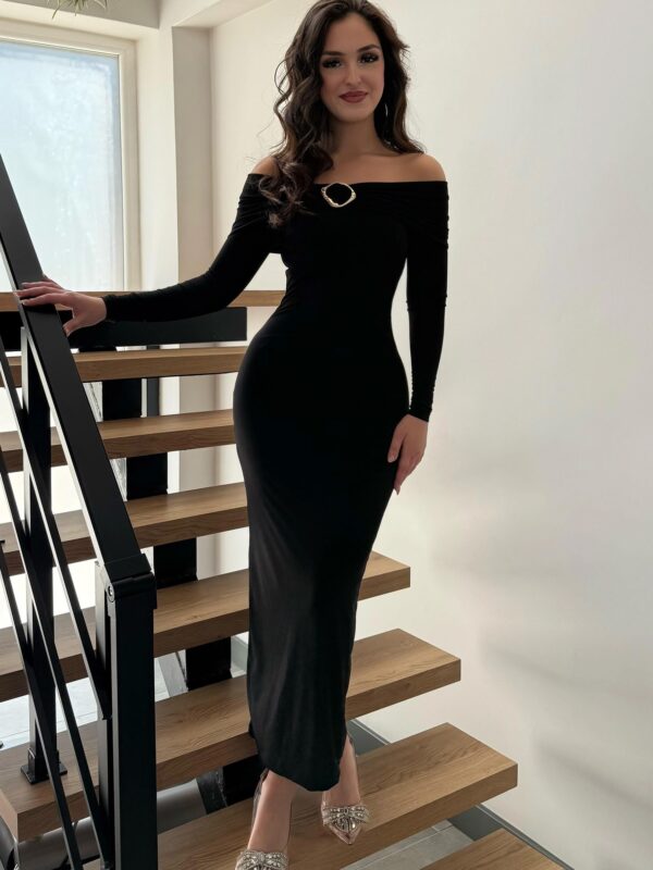 Ova sofisticirana midi haljina donosi spoj jednostavnosti i glamura, savršena za večernje prilike, svečane događaje ili posebne trenutke kada želiš izgledati profinjeno i upečatljivo.