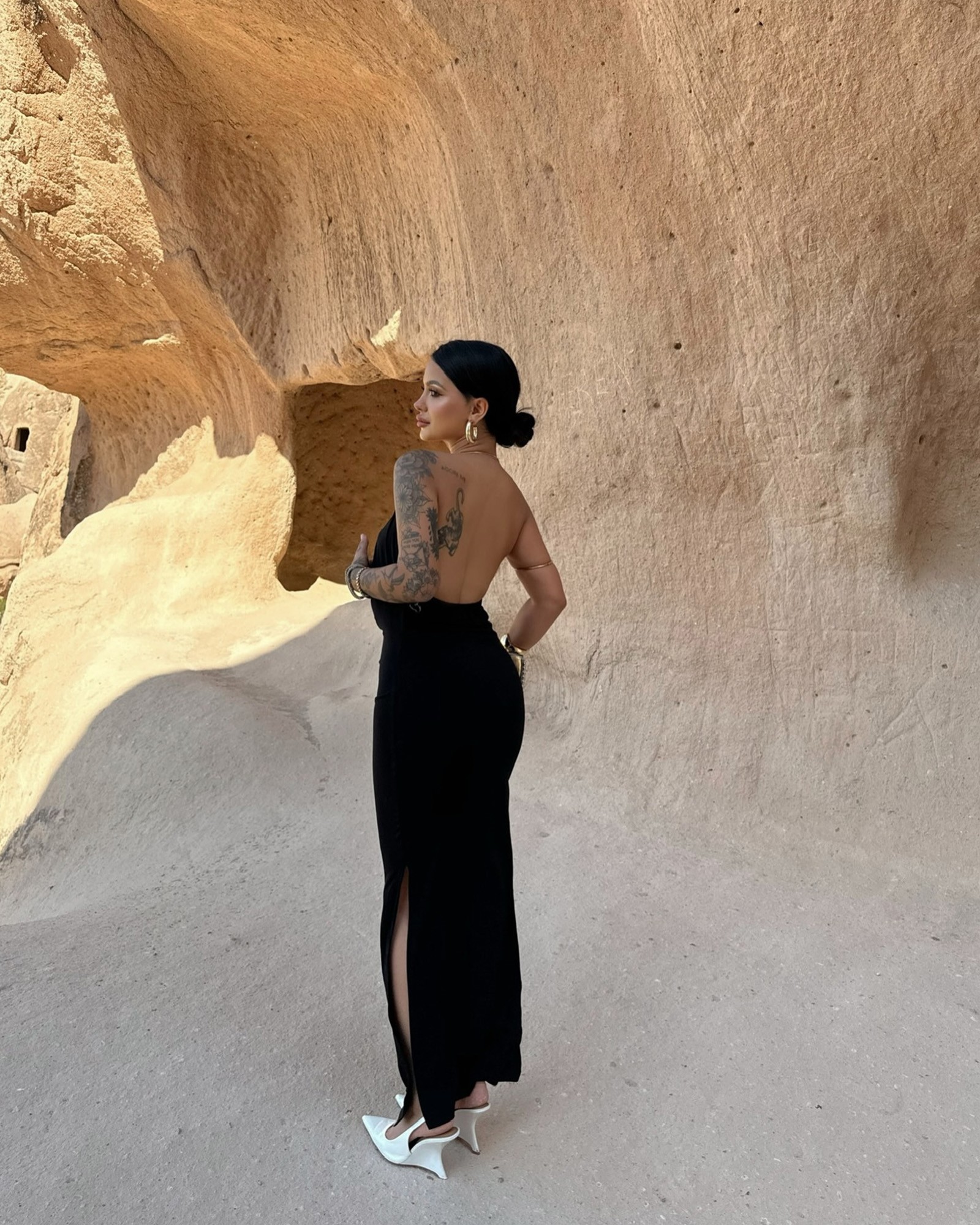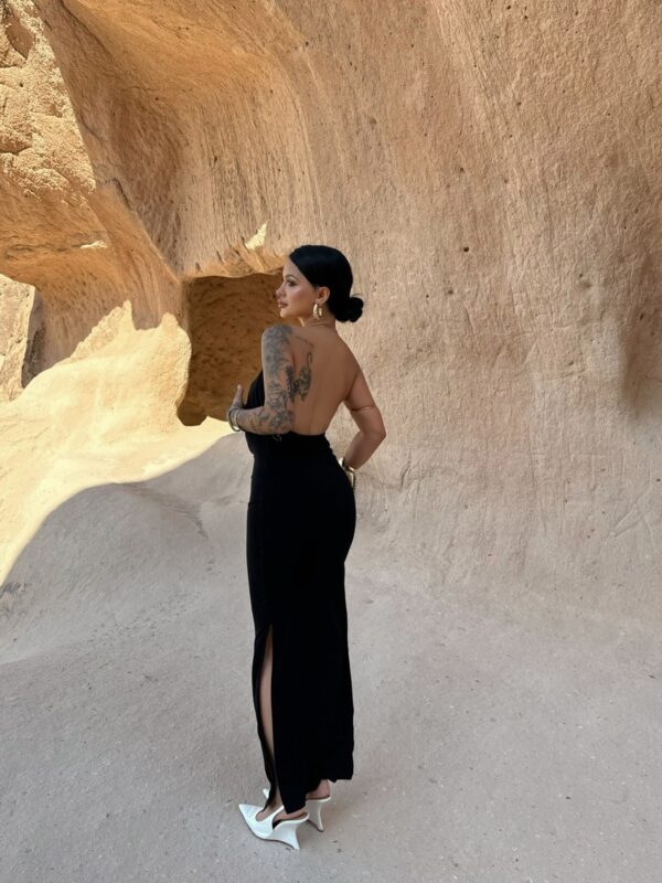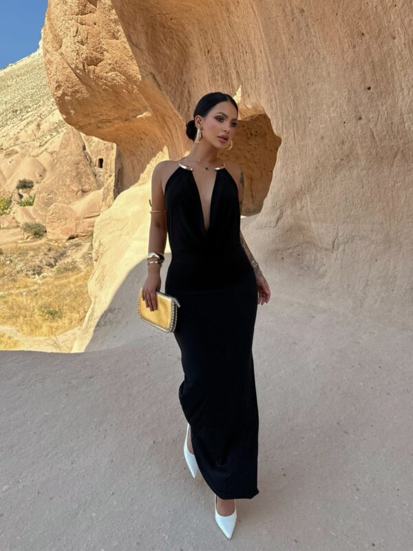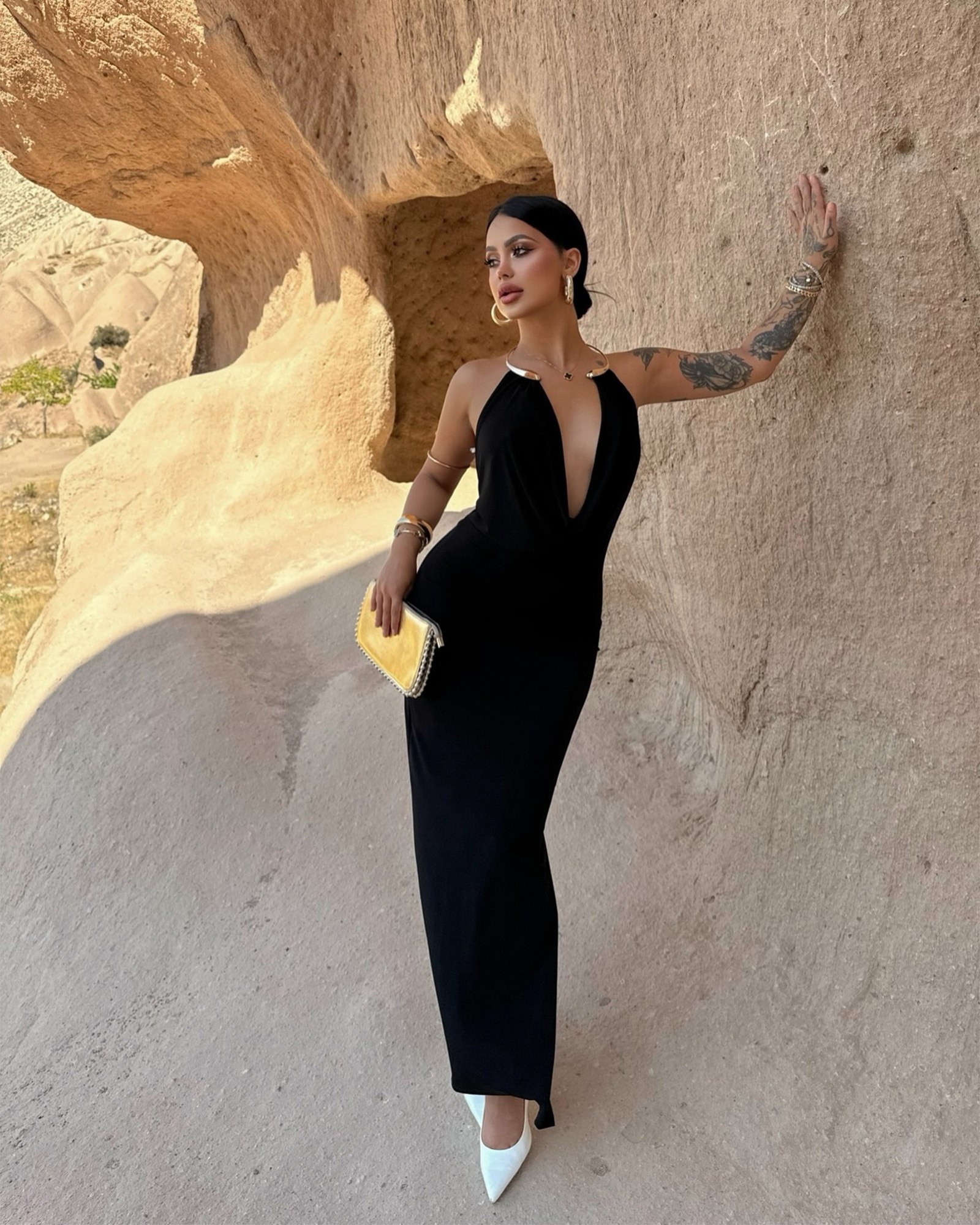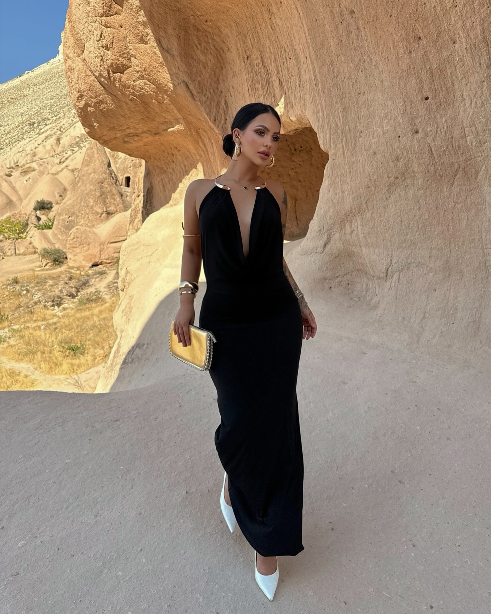 Maxi haljina s dubokim dekolteom i otvorenim leđima