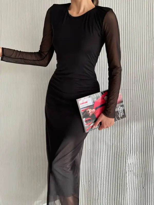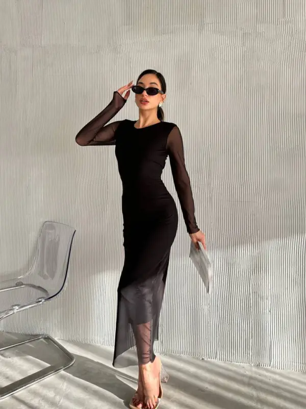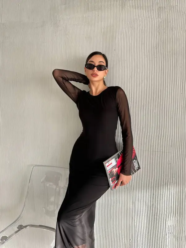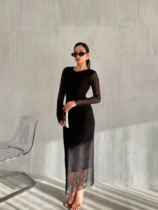 Midi haljina dvoslojnog dizajna spoj je minimalizma i elegancije. Gornji sloj izrađen je od prozračnog tila dok donji sloj čini podstava koja pruža udobnost i osigurava neprovidnost.