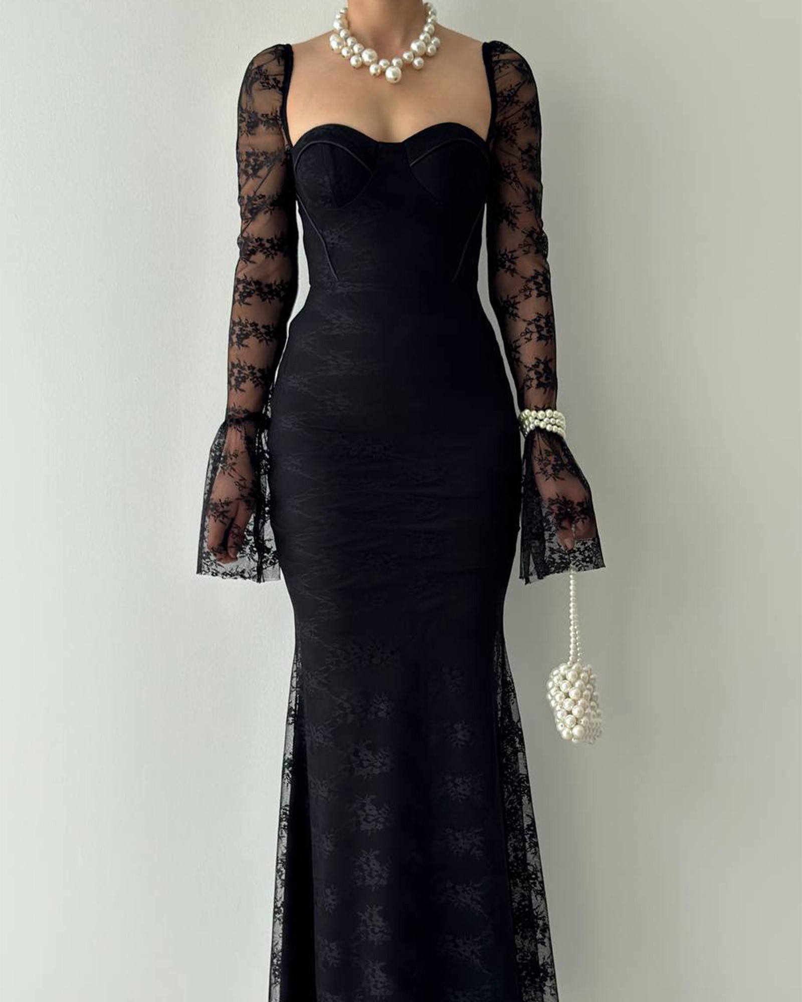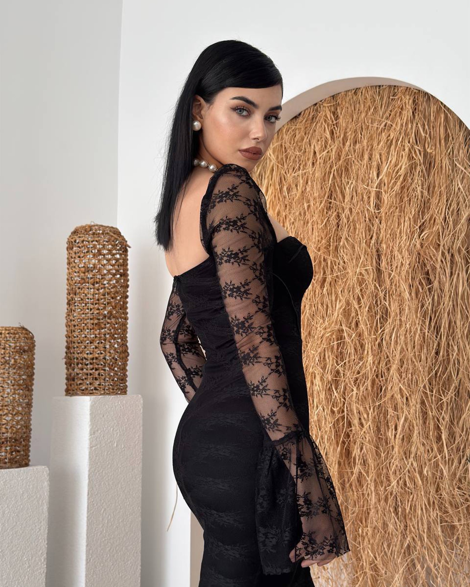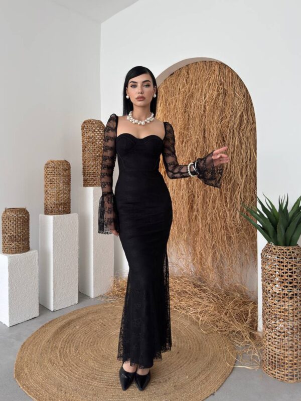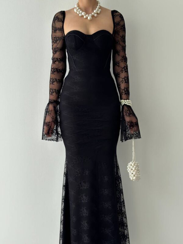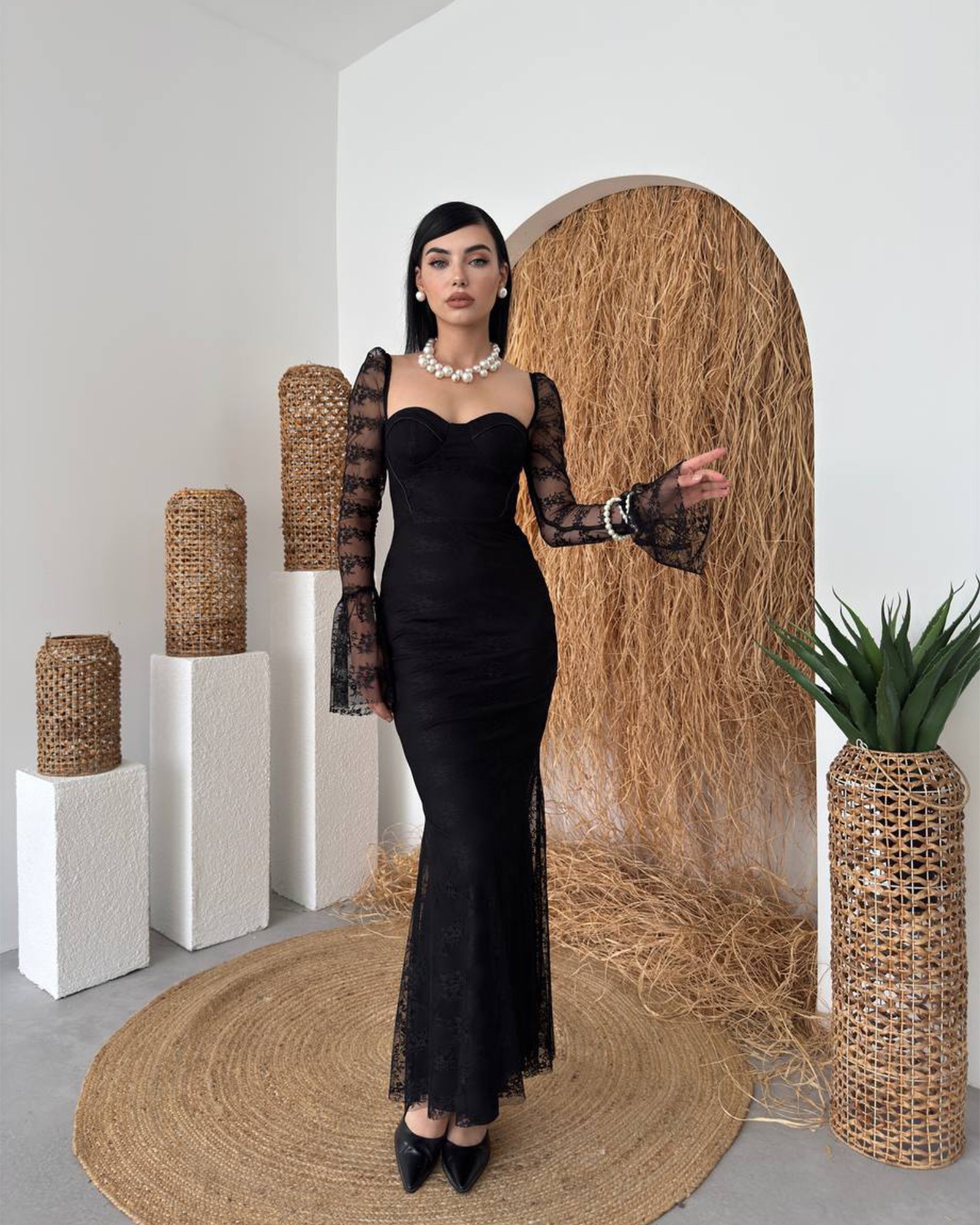 ✨ Čipkana večernja haljina – sirena silueta & dramatični rukavi ✨