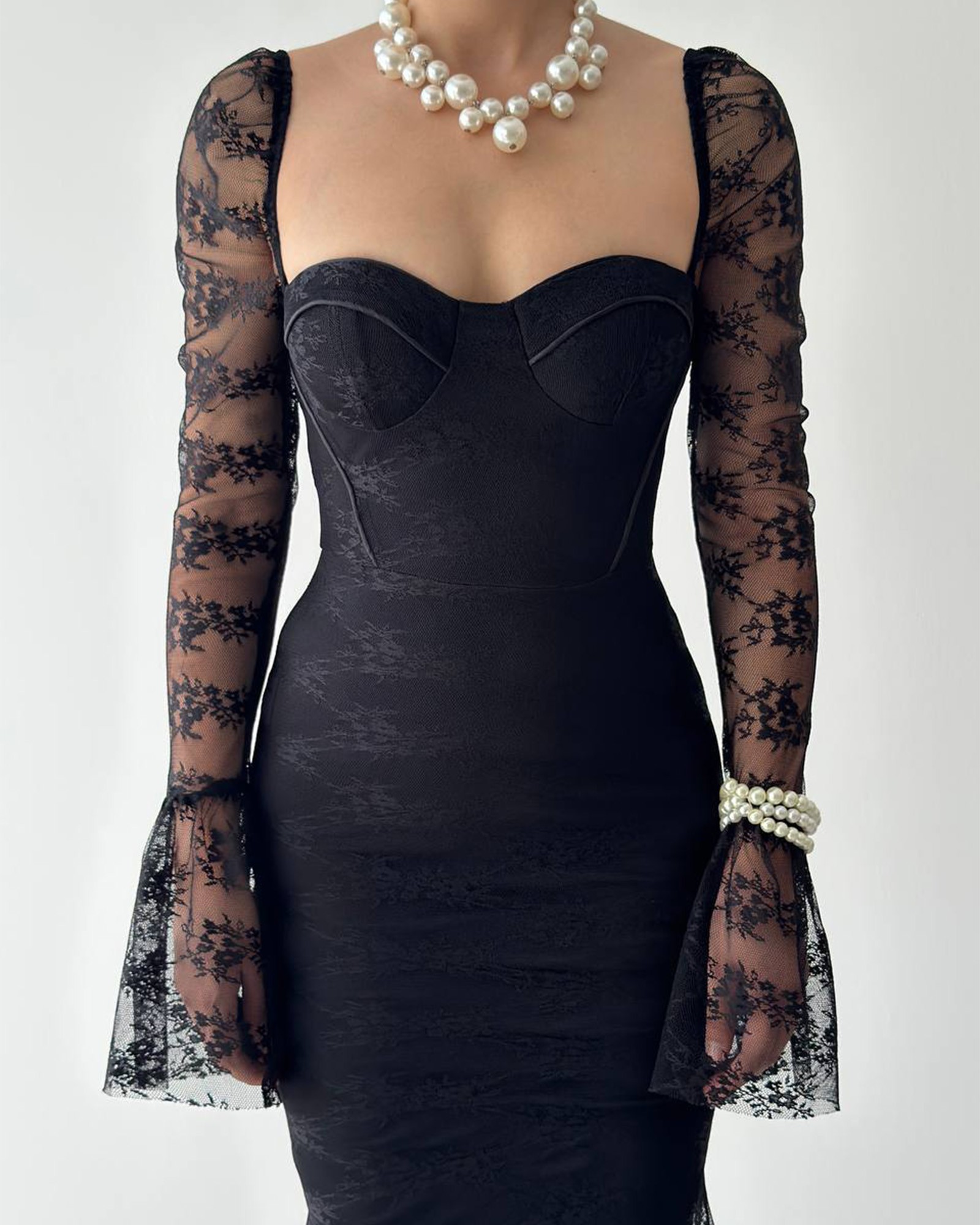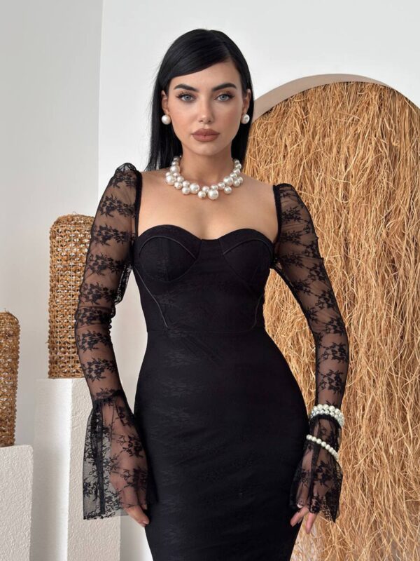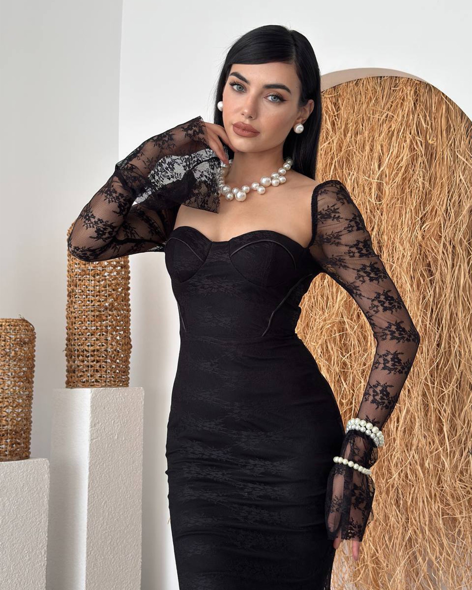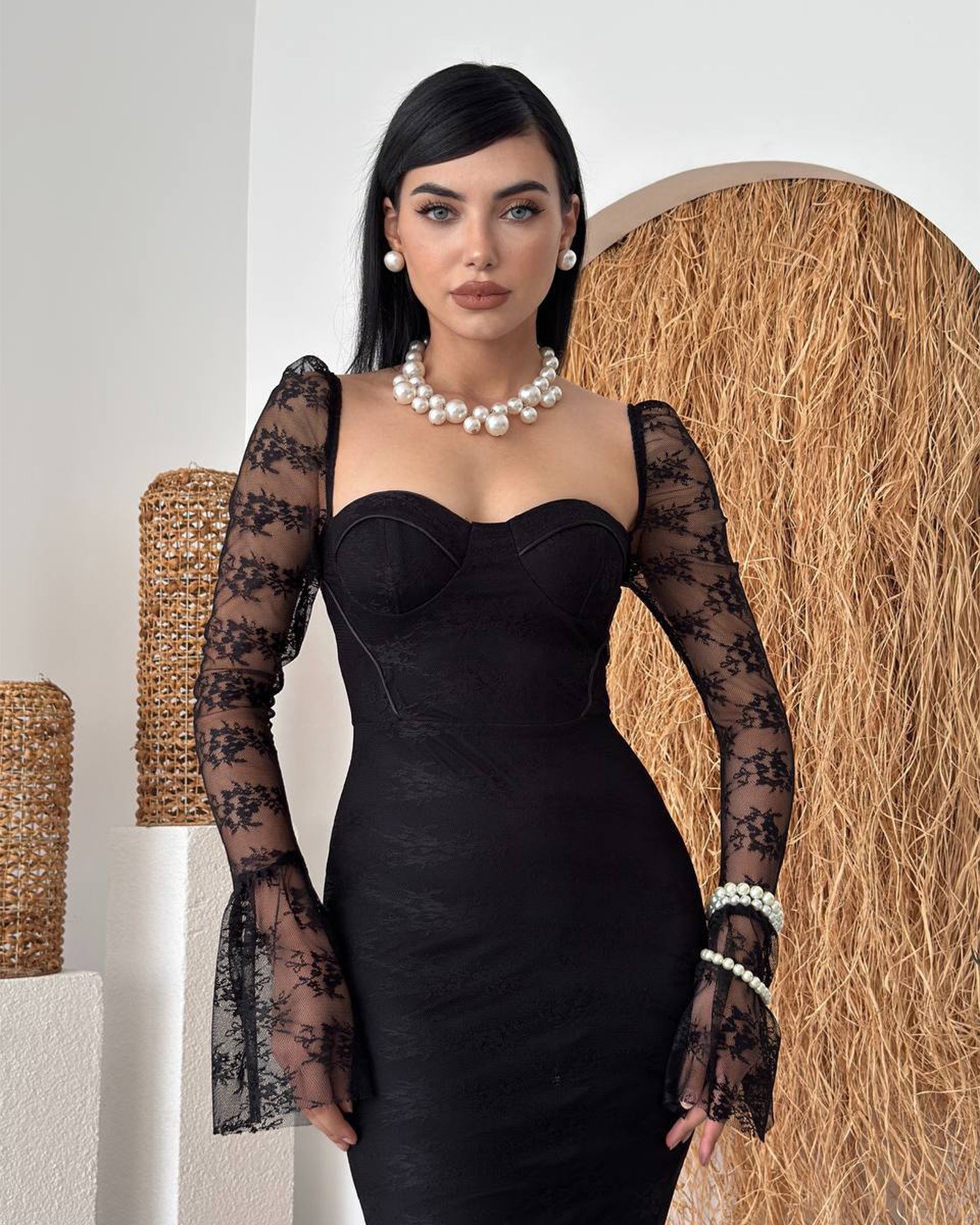 ✨ Čipkana večernja haljina – sirena silueta & dramatični rukavi ✨