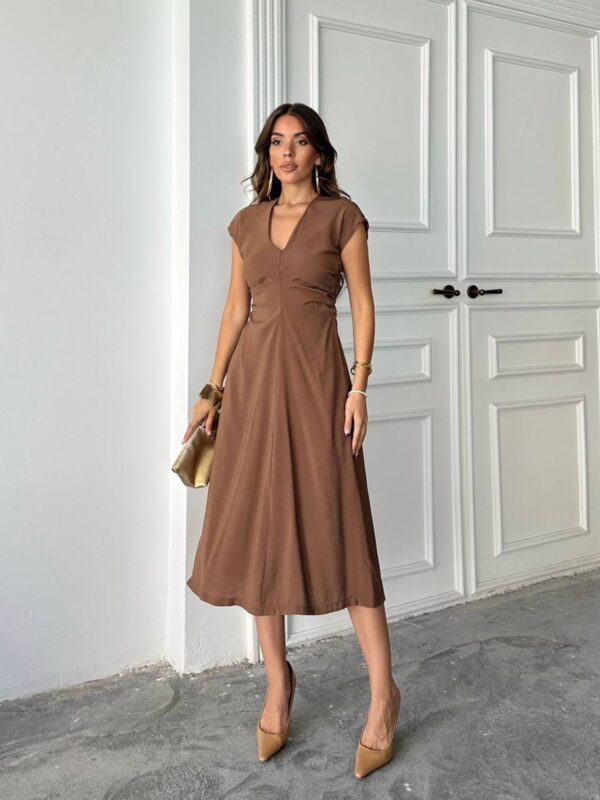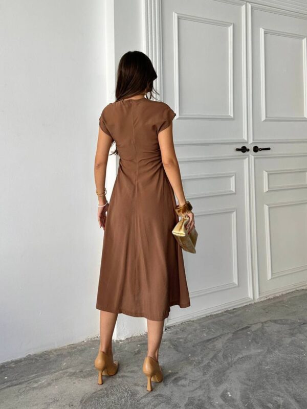 Romantična i profinjena, ova midi haljina oslanja se na jednostavne linije i prelijep pad tkanine—idealna za sve prilike od dnevnih događaja do večernjih izlazaka.