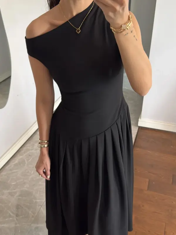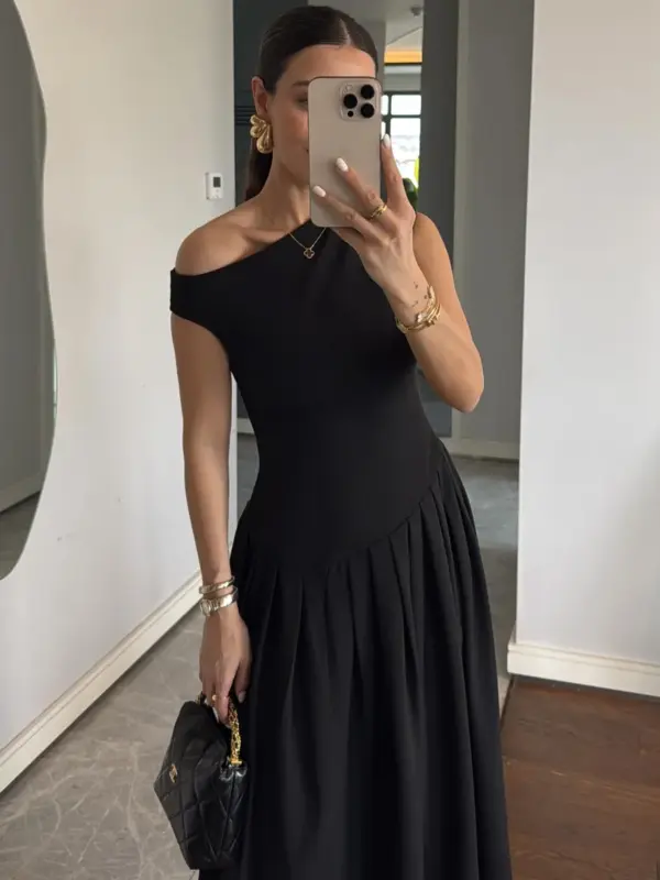 Elegantna asimetrična midi haljina na jedno rame – klasika s modernim twistom 🖤