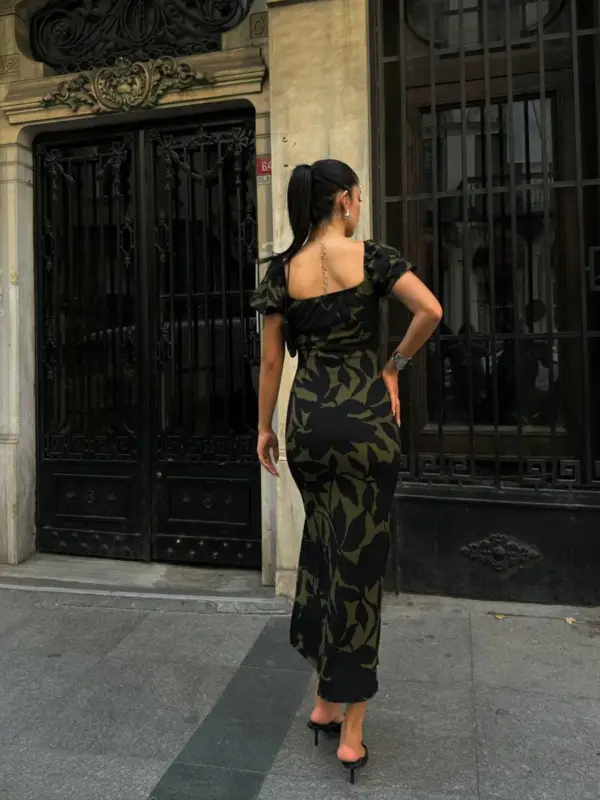 Istaknite svoju figuru u ovoj uskoj midi haljini s predivnim printom! Rastezljiv materijal savršeno se prilagođava tijelu, dok presjek ispod grudi dodatno naglašava siluetu. Blago puf rukavi i kockasti okovratnik s obje strane dodaju dašak romantičnog stila, a izrez sprijeda po nozi osigurava atraktivan i sofisticiran izgled. Idealna za večernje izlaske, posebne prilike ili stylish svakodnevne kombinacije.
