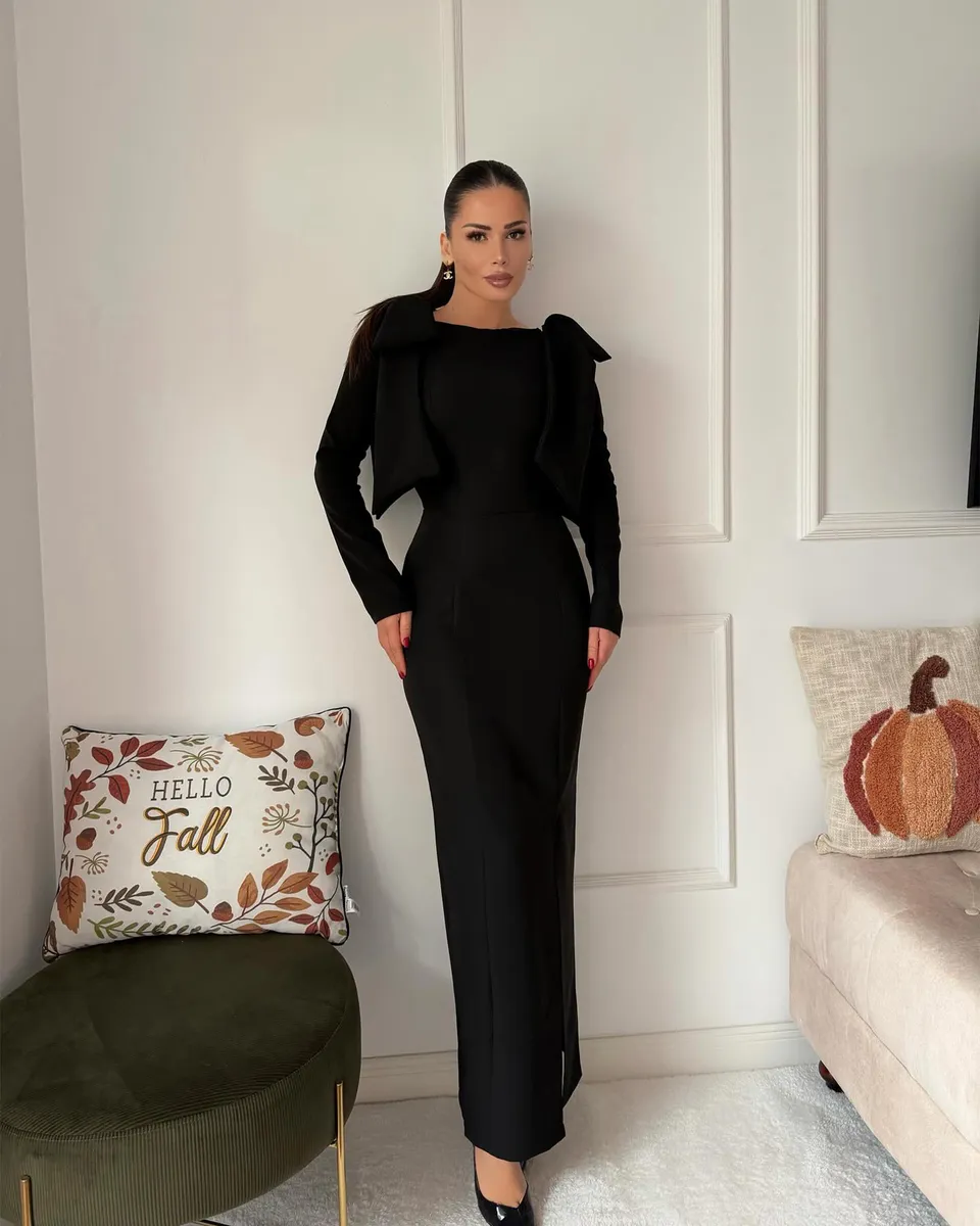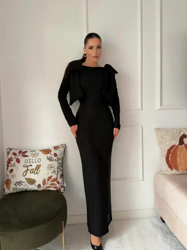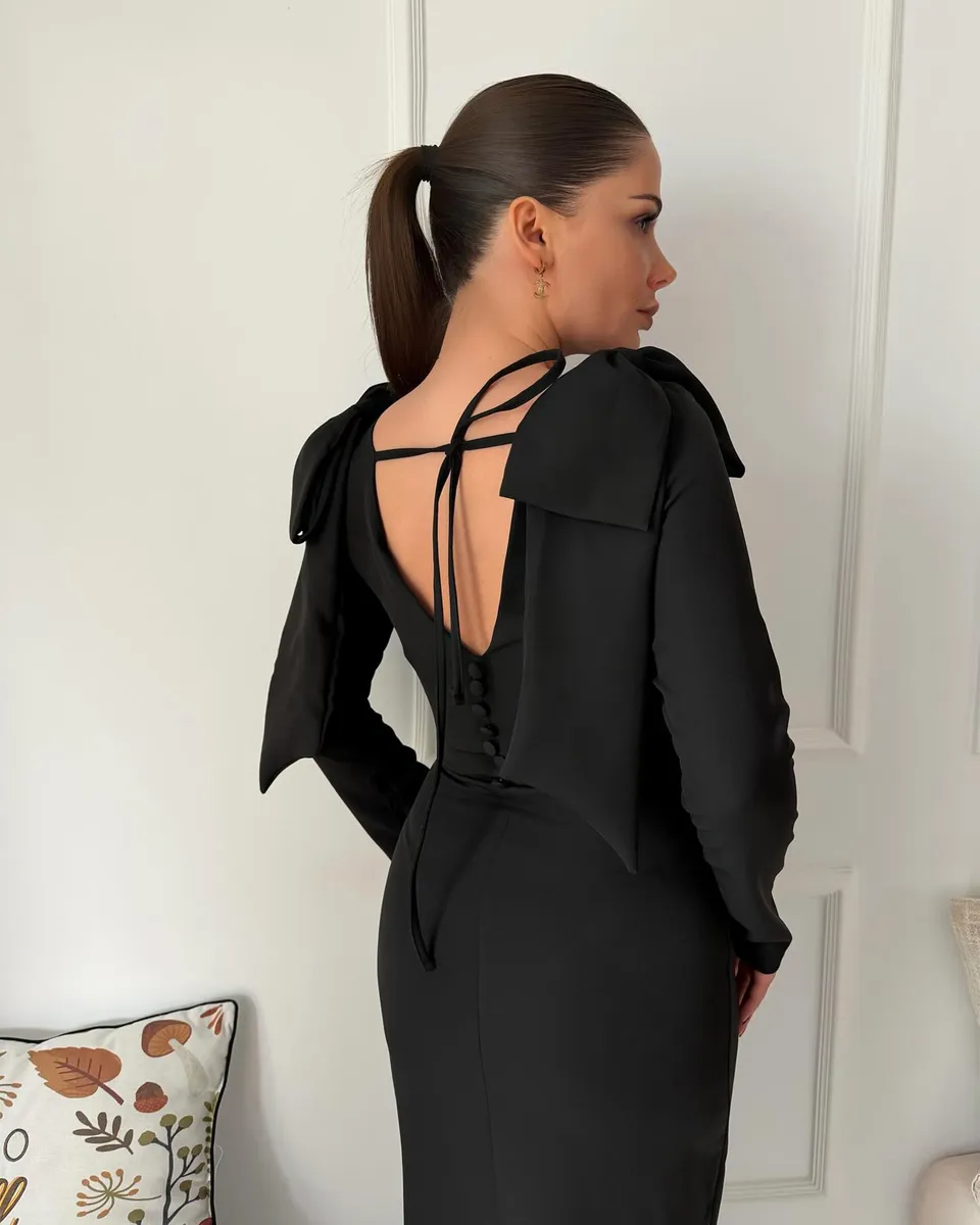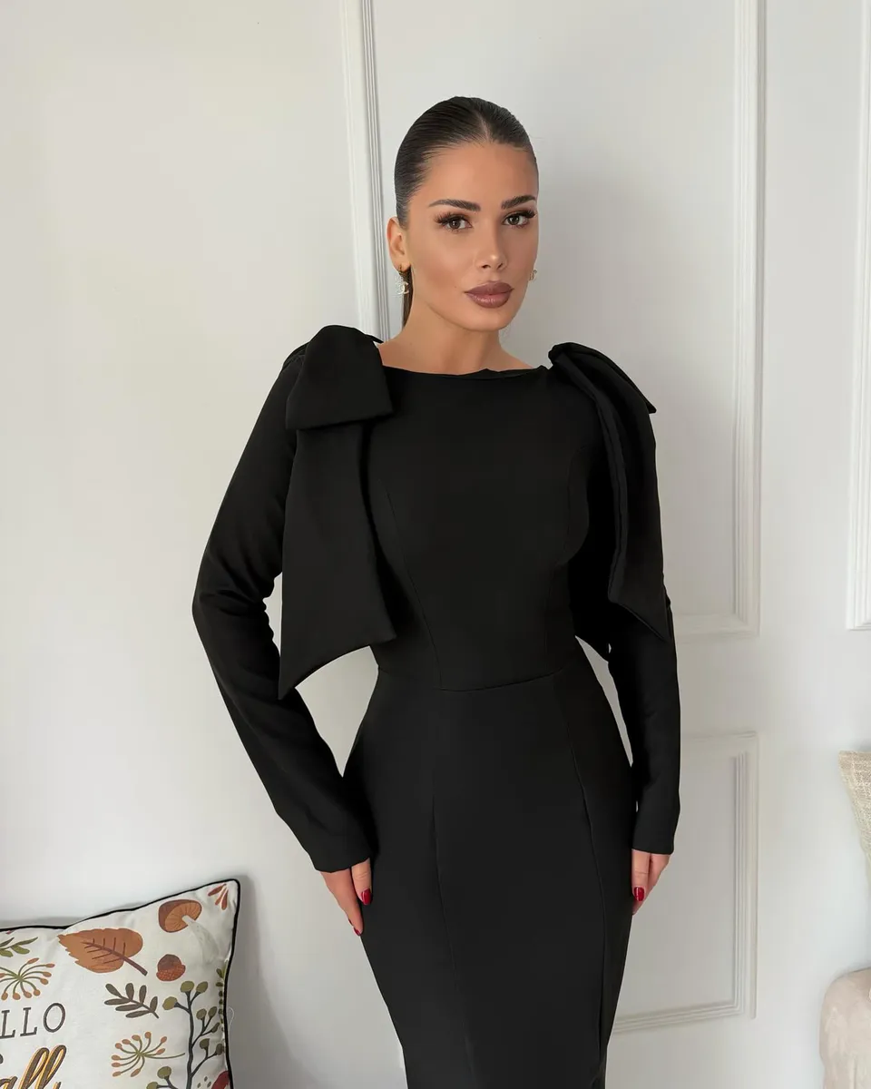 🍷 Elegantna haljina s mašnama na ramenima 🍷