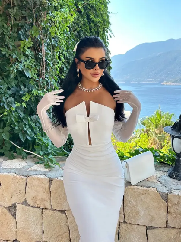 Elegantna strukirana midi haljina – sofisticirana i zavodljiva. **rukavice ne dođu uz haljinu.