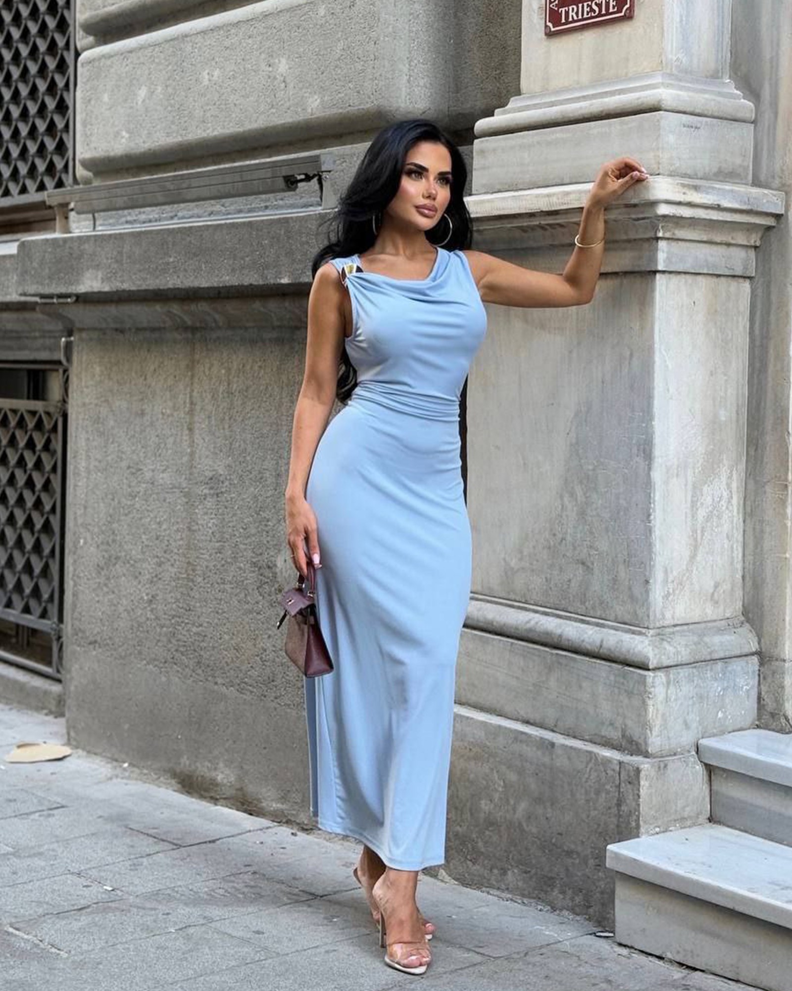 ✨ Elegantna midi haljina s metalnim prstenom na ramenu ✨