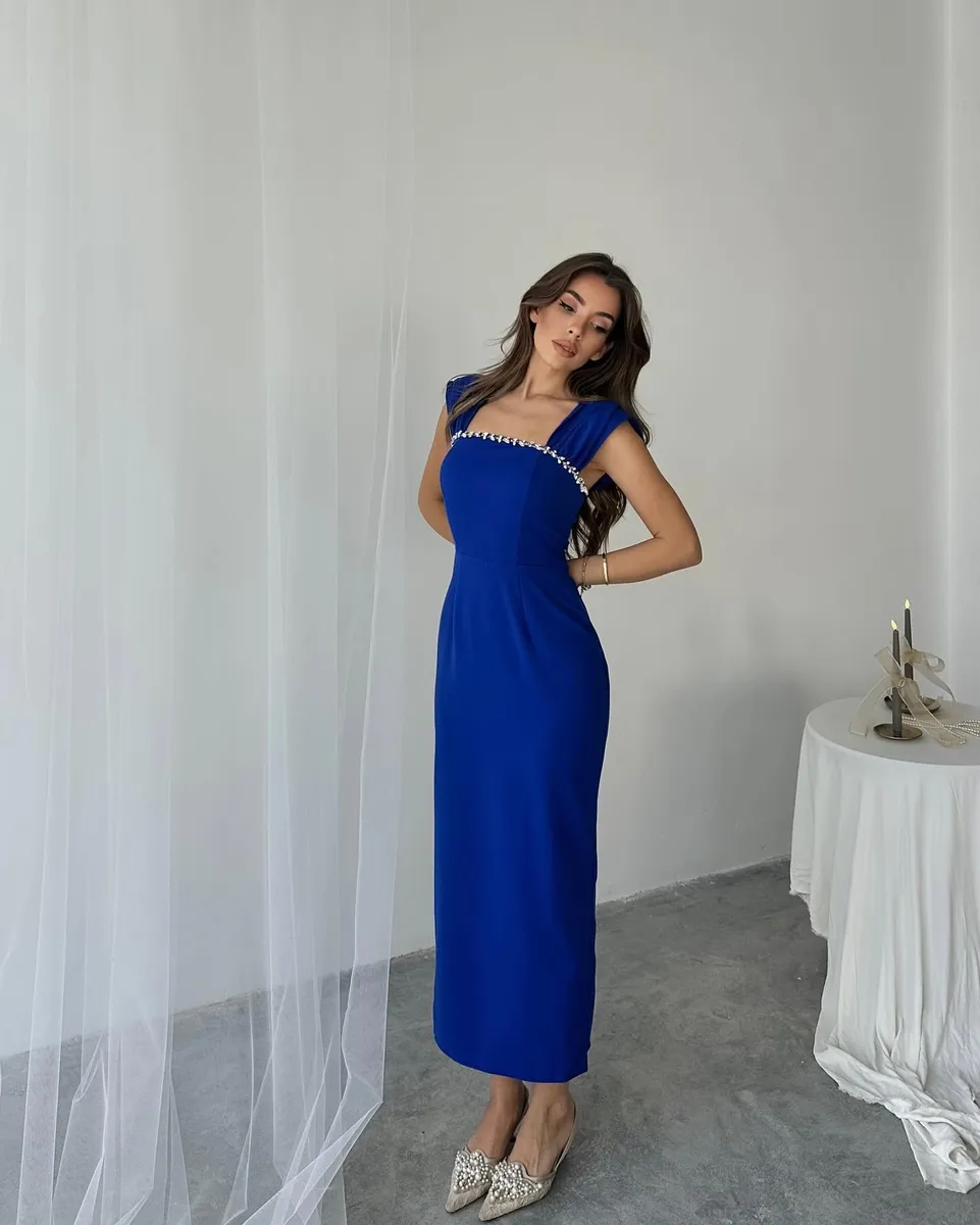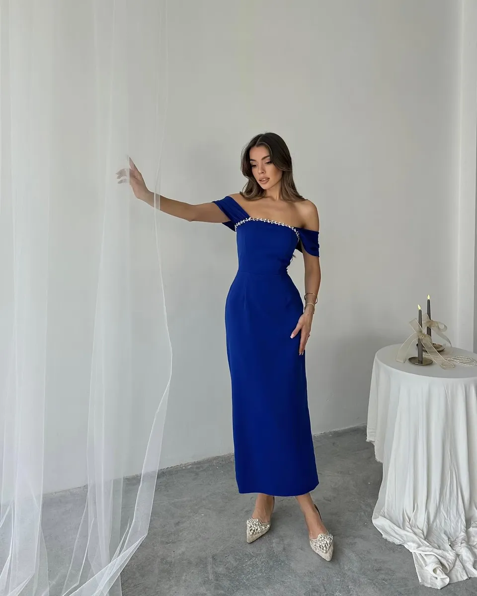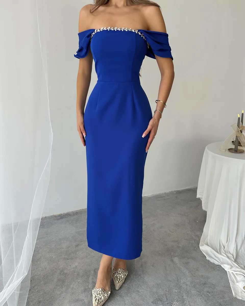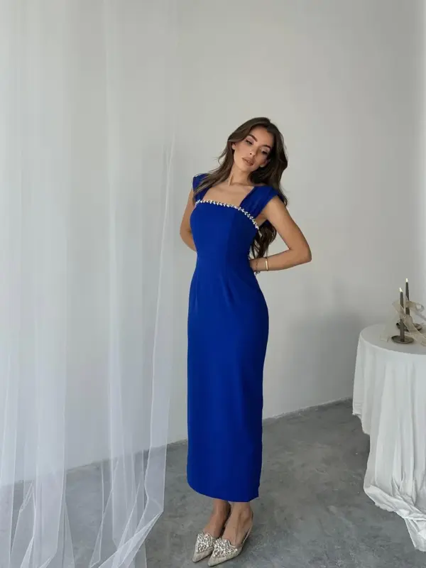 🔹 Dizajn: Midi dužina, bez naramenica, s elegantnim rukavima spuštenim preko ramena