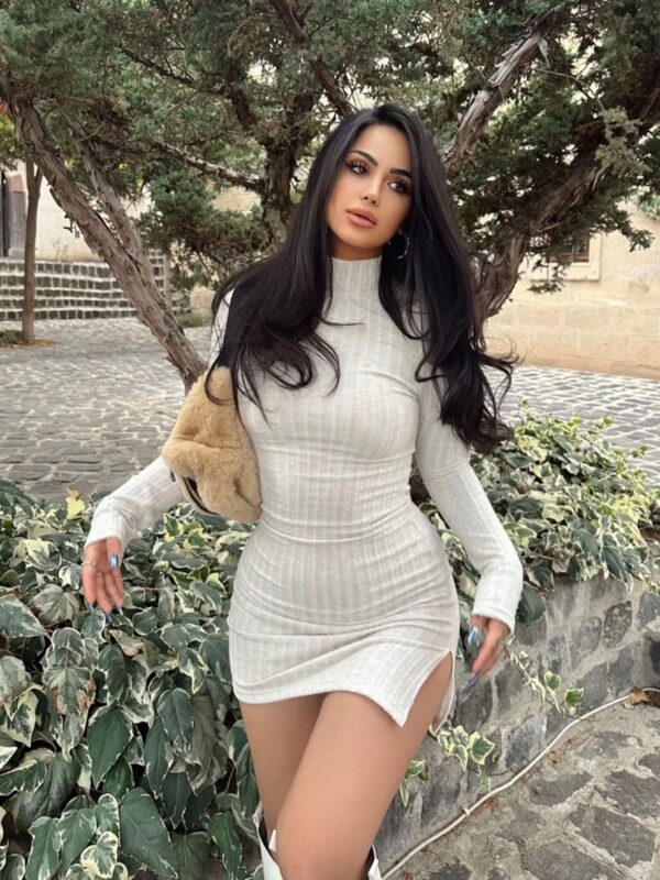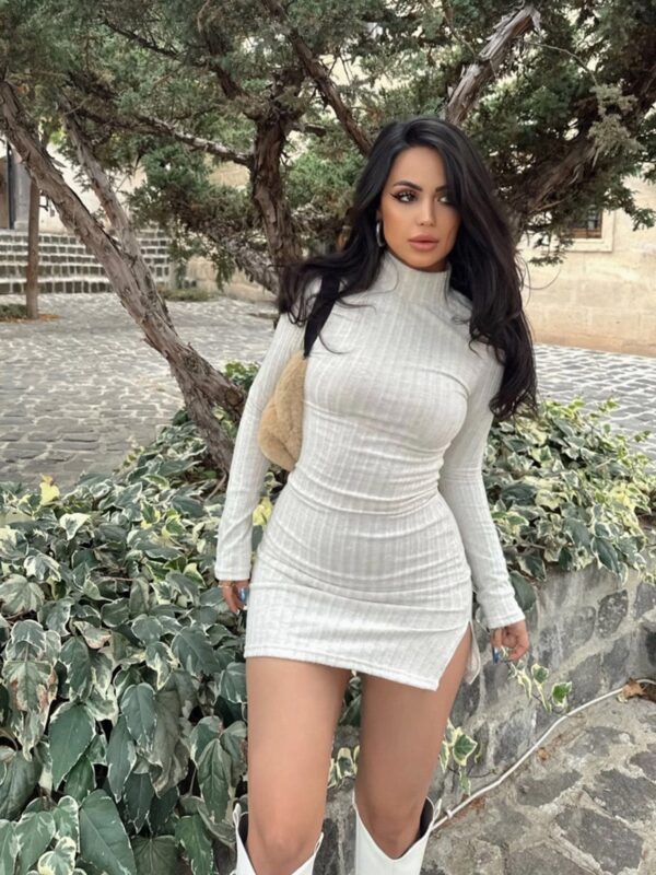 Mini rebrasta haljina sa izrezom sa strane. Jako kratka – preporučujemo pogledajte dimenzije prije kupovine.
